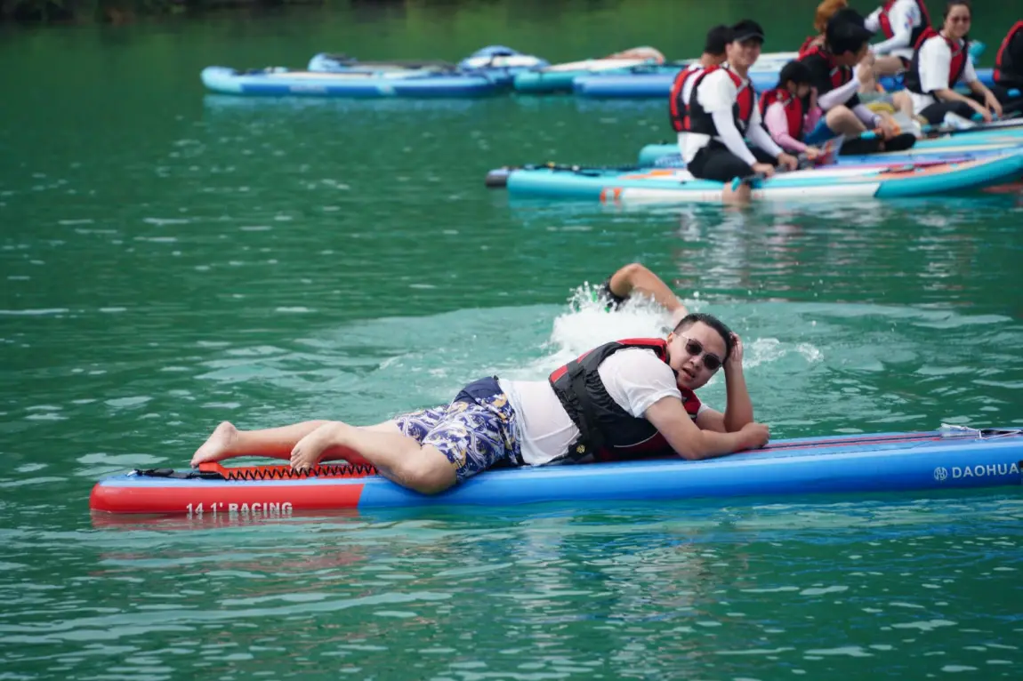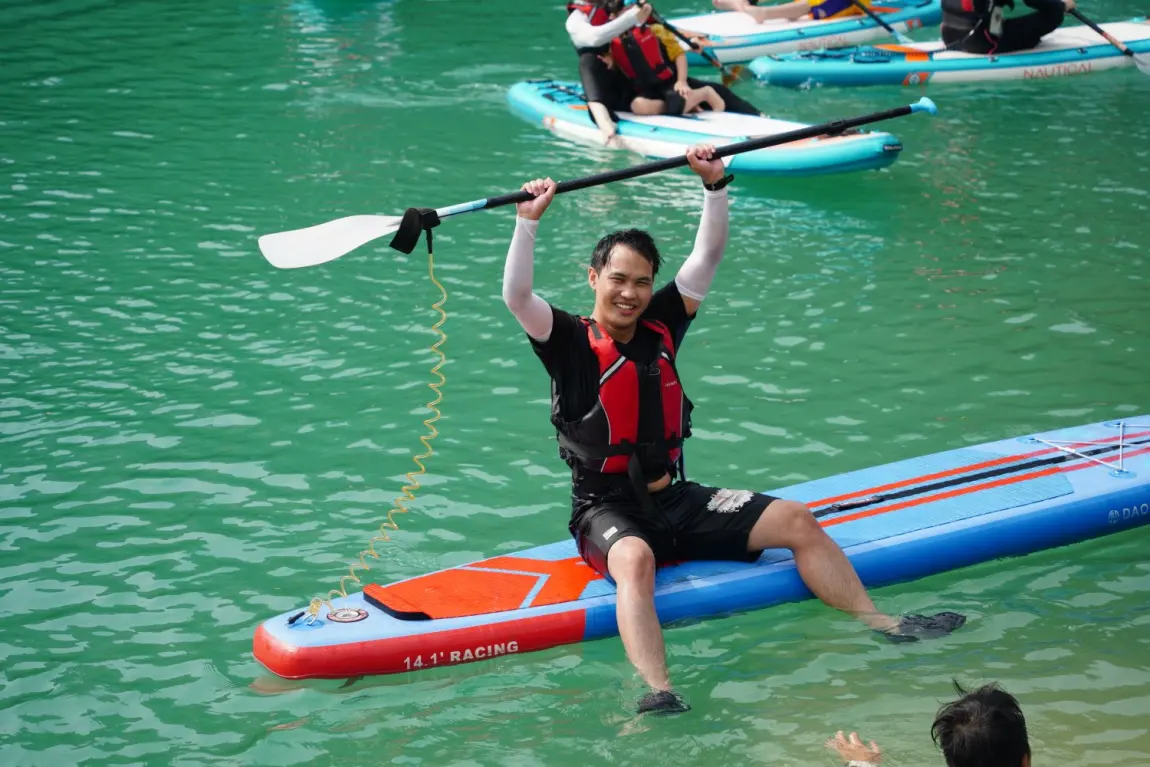 活动期间,我们学习了 SUP 桨板的技巧。教练非常专业、耐心地研究我们的问题,并对我们提出了很好的建议。很快,我就掌握了 SUP 桨板技术,可以通过 SUP 桨板在湖上划行、平衡、转弯,享受着美丽的风景。
