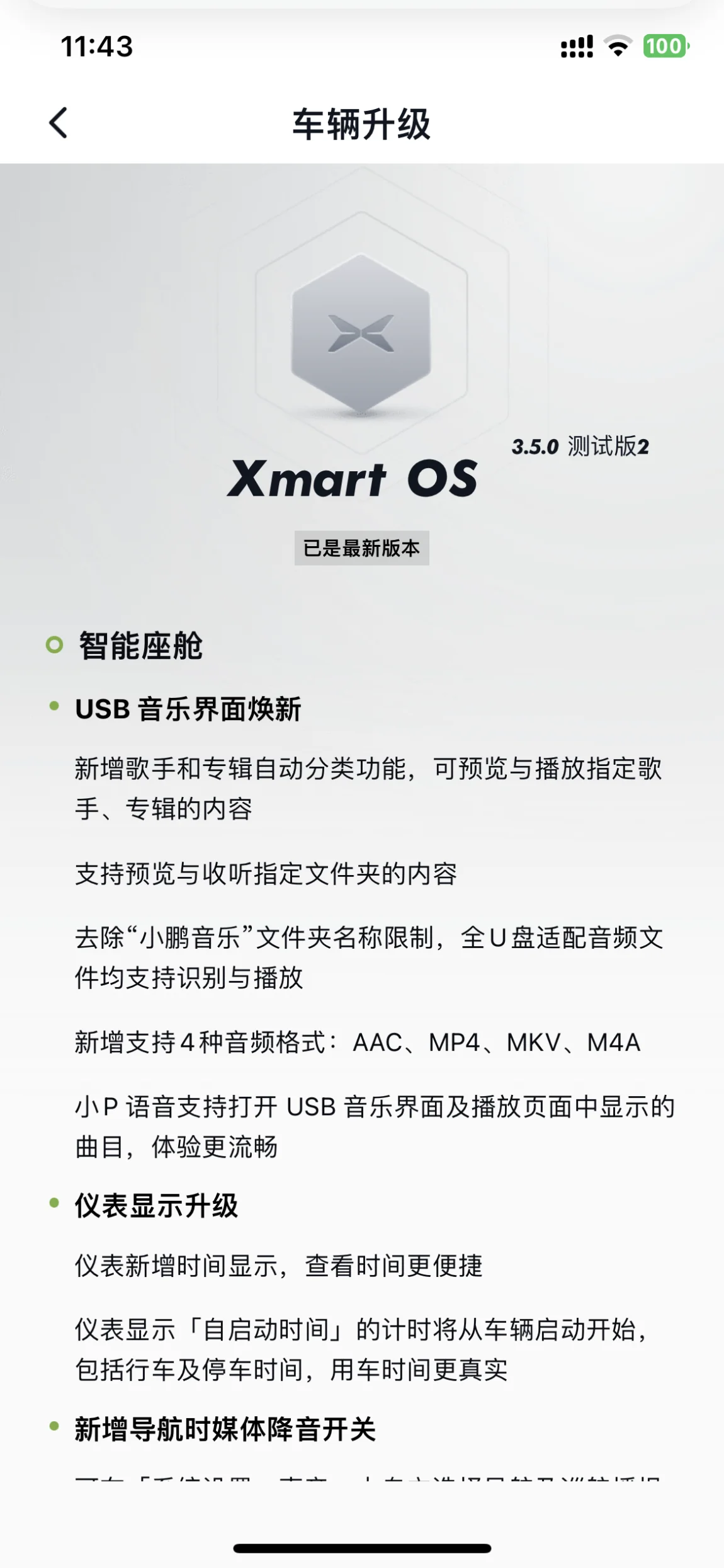 虽然这次只是一些小更新,但是基本都是车主们呼声比较大的几个功能!说明鹏厂还是有关心关注车主的👏🏻期待鹏厂越来越好(我3000度免费电还想用一辈子)