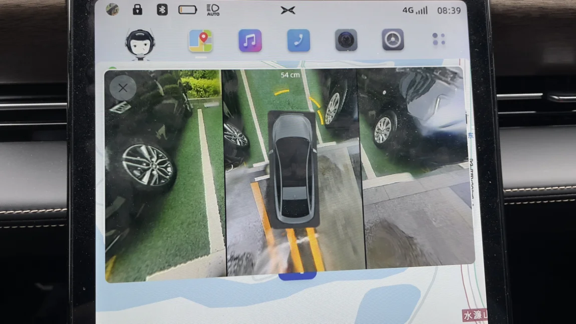 第五个我觉得使用的功能就是这个360影像!实测基本调在中档的话前后左右有车靠近他都会提前打开,并且会在上面标示离障碍还有多远,可以了目前来说我满意了。这样子方向盘上的x键就可以换回智能辅助泊车了!
