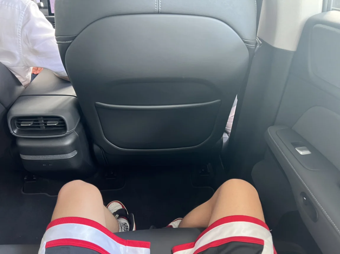 看外观尺寸很大,没想到内部空间也是很大的,跟老大哥G9的后排差不多,座垫长度和靠背都很不错的,这次内饰的皮质都很高级。