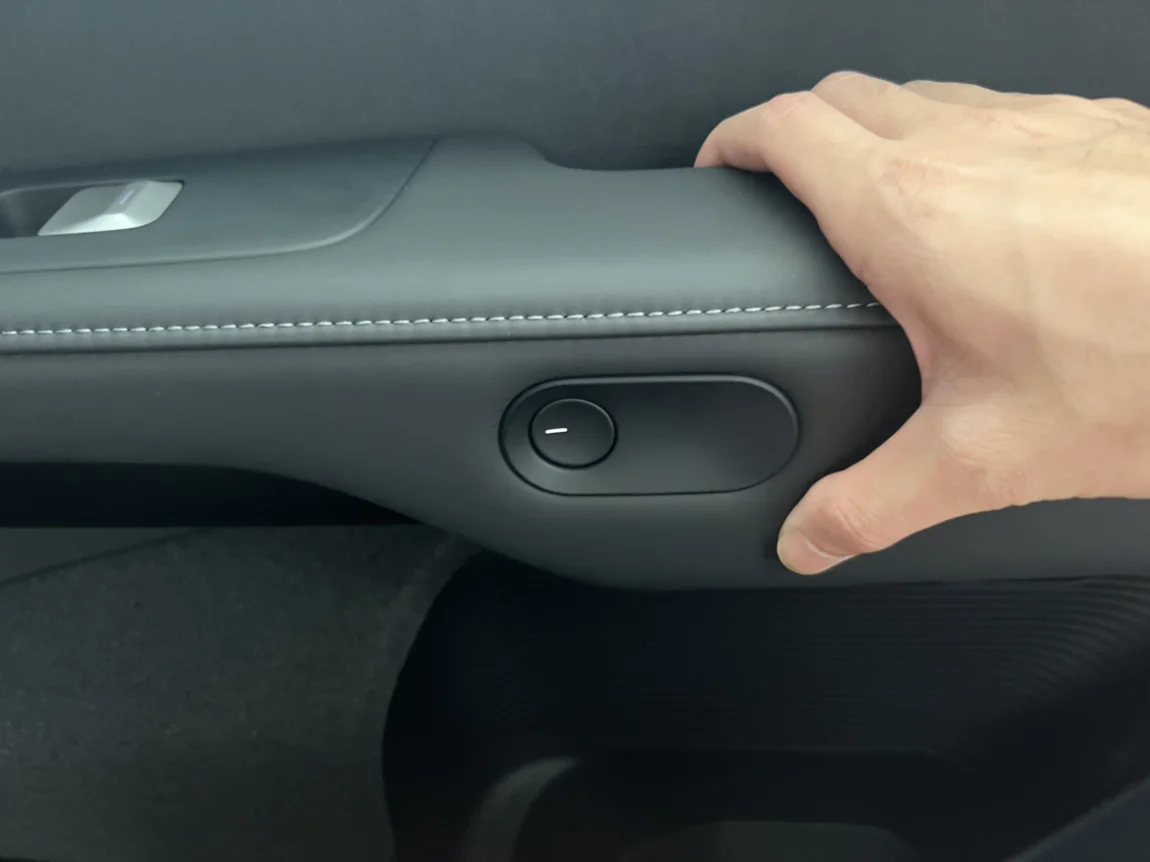 内部开门不再是传统的拉手杆,变成了比较新颖的按钮弹开的设计,给人一种很好玩很新鲜的感觉,这个设计还很不错,人车交互感;