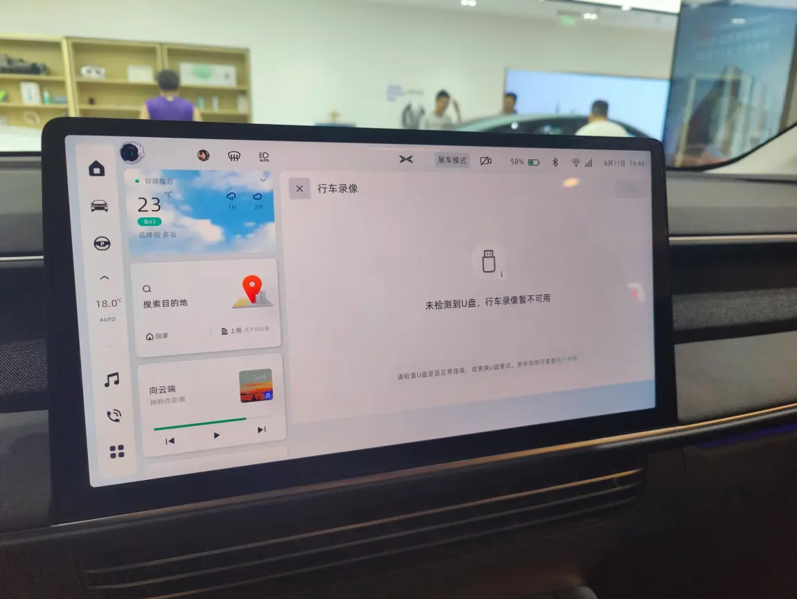 #与小鹏G6一拍即合# 下订单后,昨天终于有时间去蓝港看了g6。1.仪表盘虽然小,但分辨率没问题,副驾那边看过来有点磨砂感,据说是防窥屏设计。2.行车记录仪外插U盘就可以使用,看来是提车就有的功能,建议门店可以附上U盘让客户体验下效果。3.座椅舒适度秒杀老p7,后排空间超大,客户基本都是冲着g6来的。总结就是很适合家用,舒适度+空间+座舱智能化都不错。