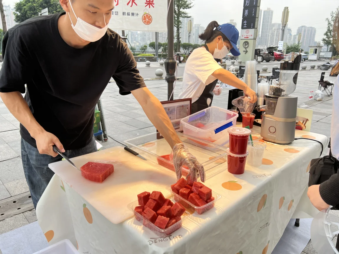 夏天来了,卖西瓜汁的摊位有点多,孤男瓜女,哈哈
