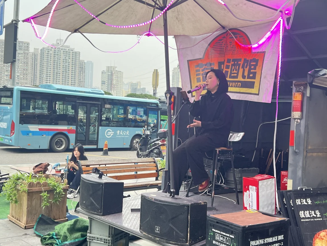 还有音乐酒馆,小姐姐唱的还很好听,室外边喝边听,也挺惬意