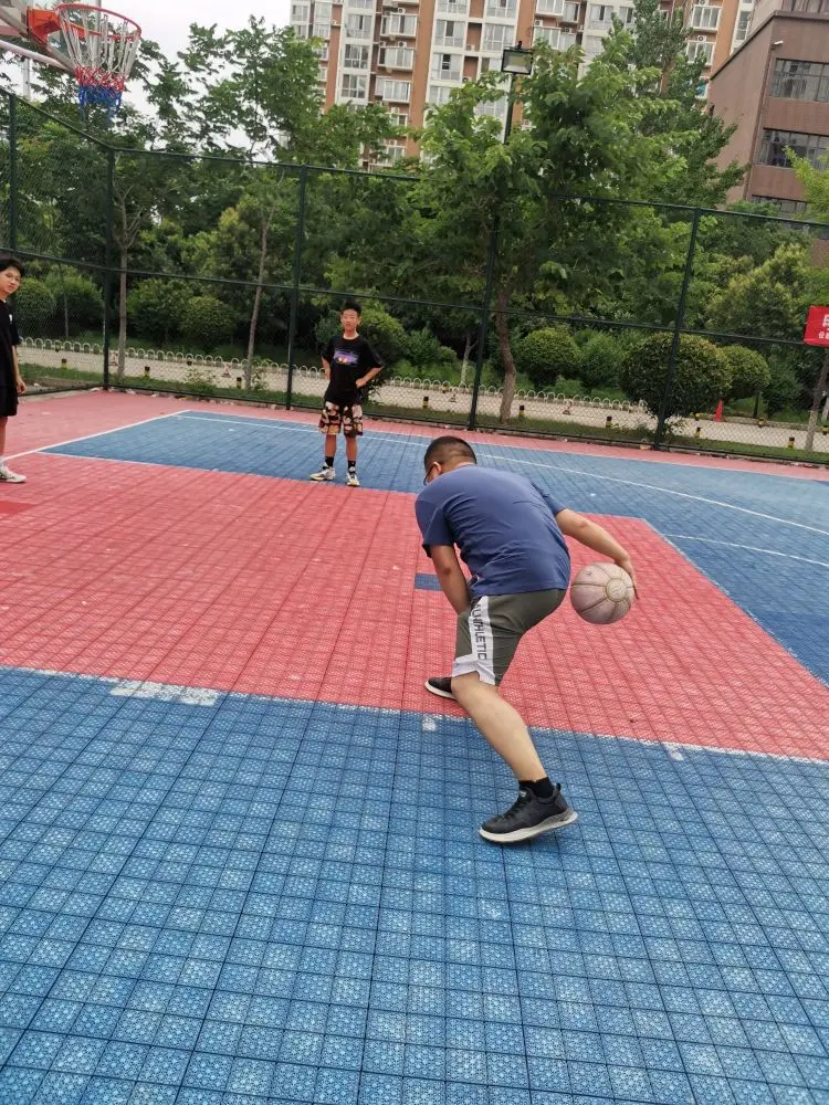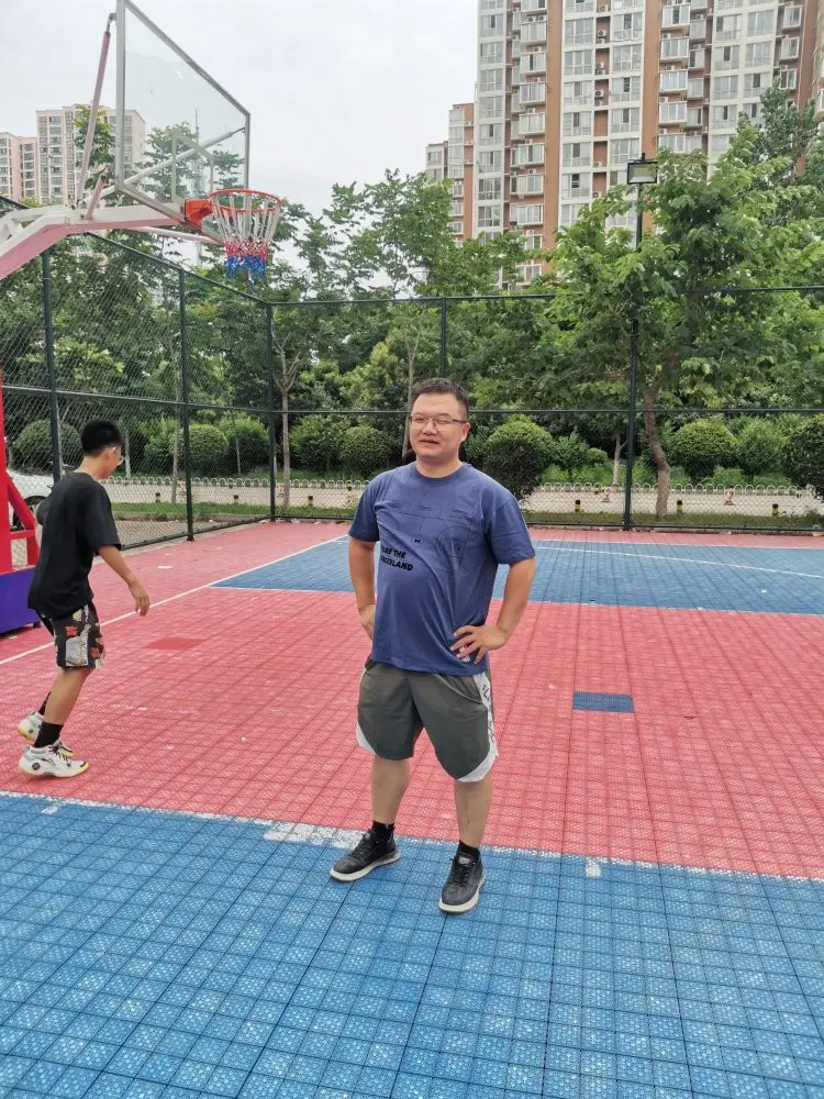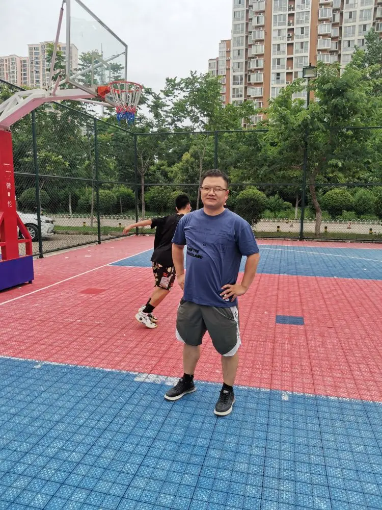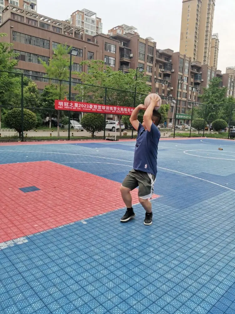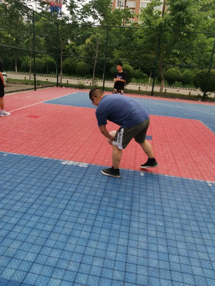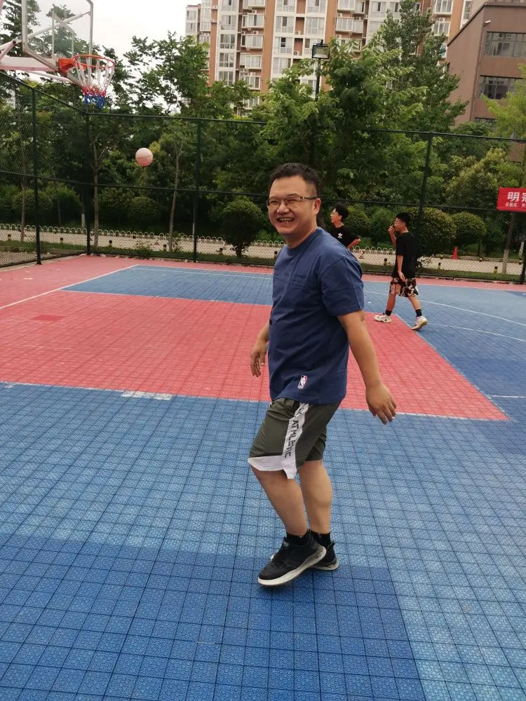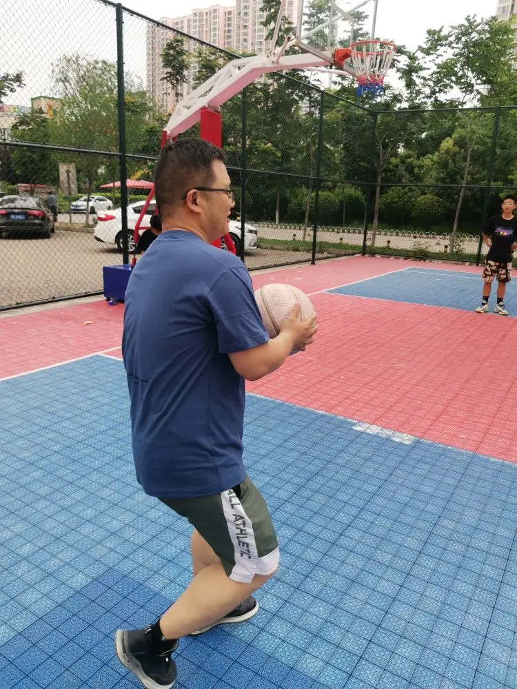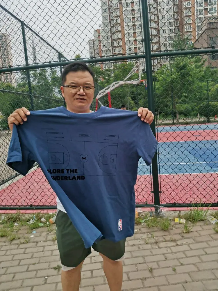 材料是棉质的,摸着很柔软,没有多余的线头,尺码标准,也属于宽松版型,穿着贴身很舒服,也比较吸汗,透气性好,适合打球或者运动的时候穿。这不,穿上就来打球了。虽然工作的原因,他平时运动少了,肚子大 体能差,但是依然还能进空心球,说明还没有差太远