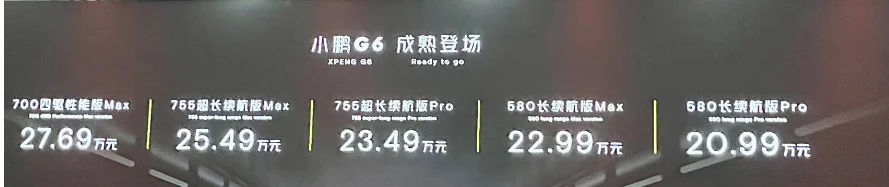 最后~可谓是卷王之王的价格。对,没错!只需要20.99万起,就可以把G6带回家~可能很多人会觉得不值,但是懂的都懂~这个价位区间,甚至再上一个区间,相信也绝对找不到一台这么极具性价比的智能电动车,如果有~那也只能是咱们小鹏的!