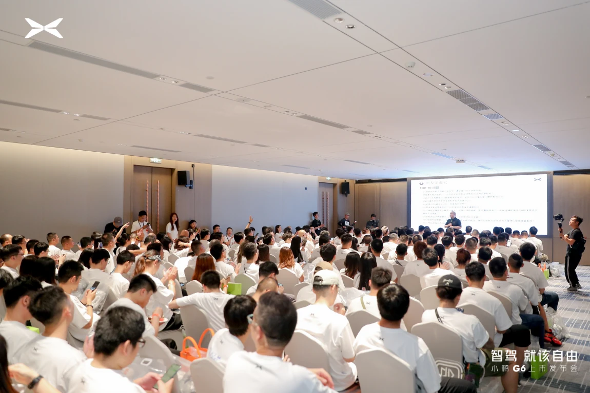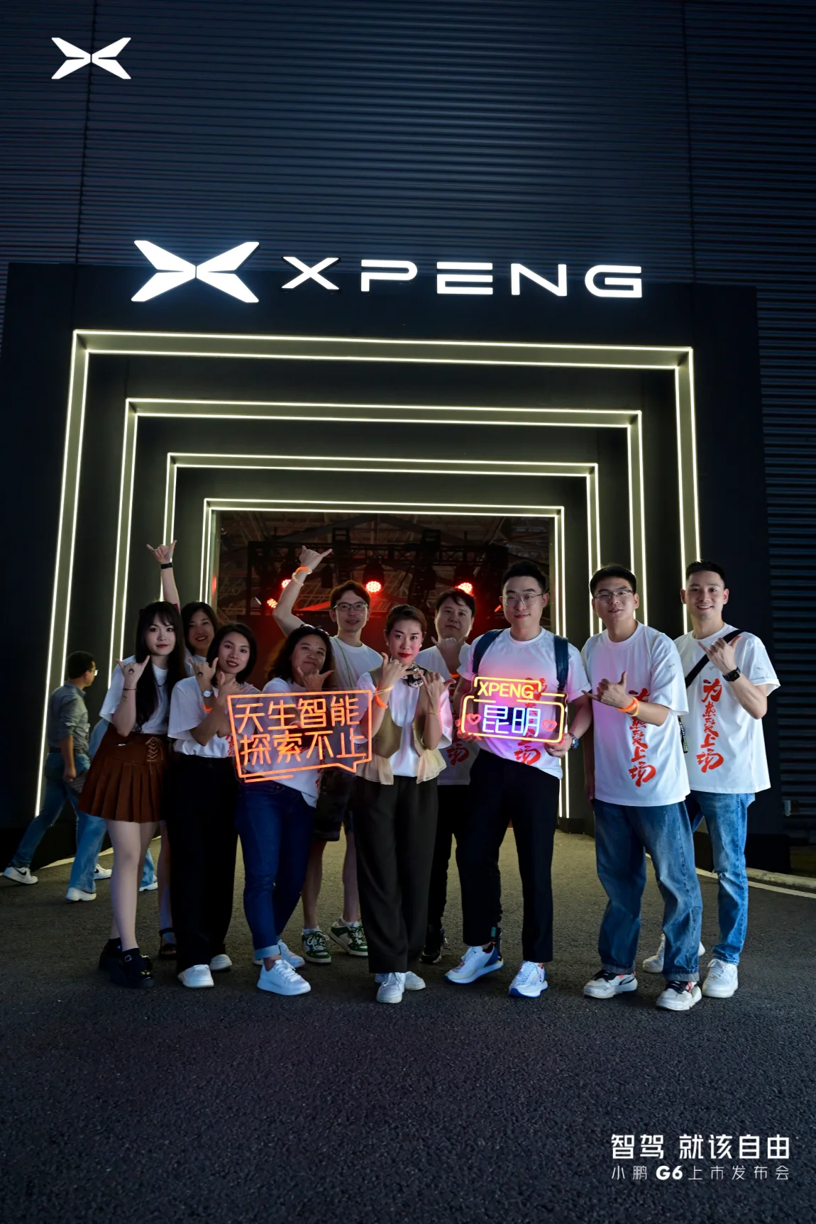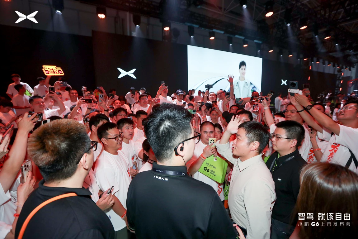 小鹏在台上说,G6一交付就有XNGP了,兄弟们!下面欢呼声不断