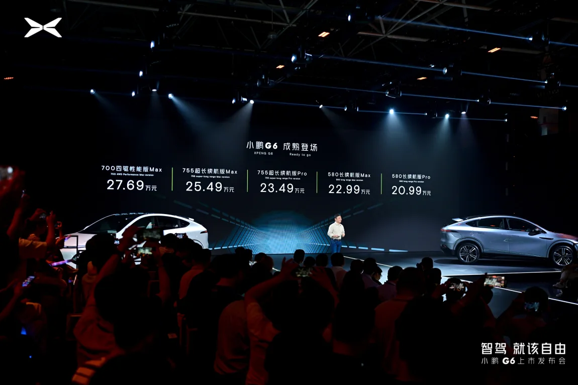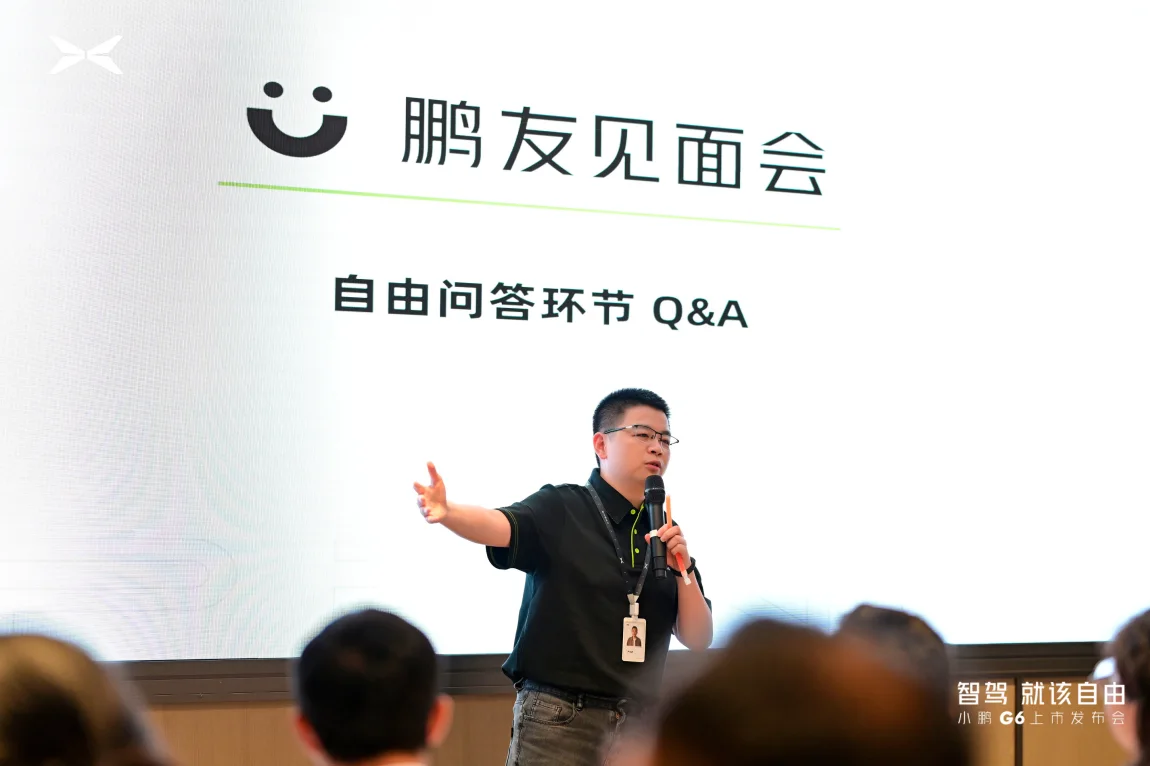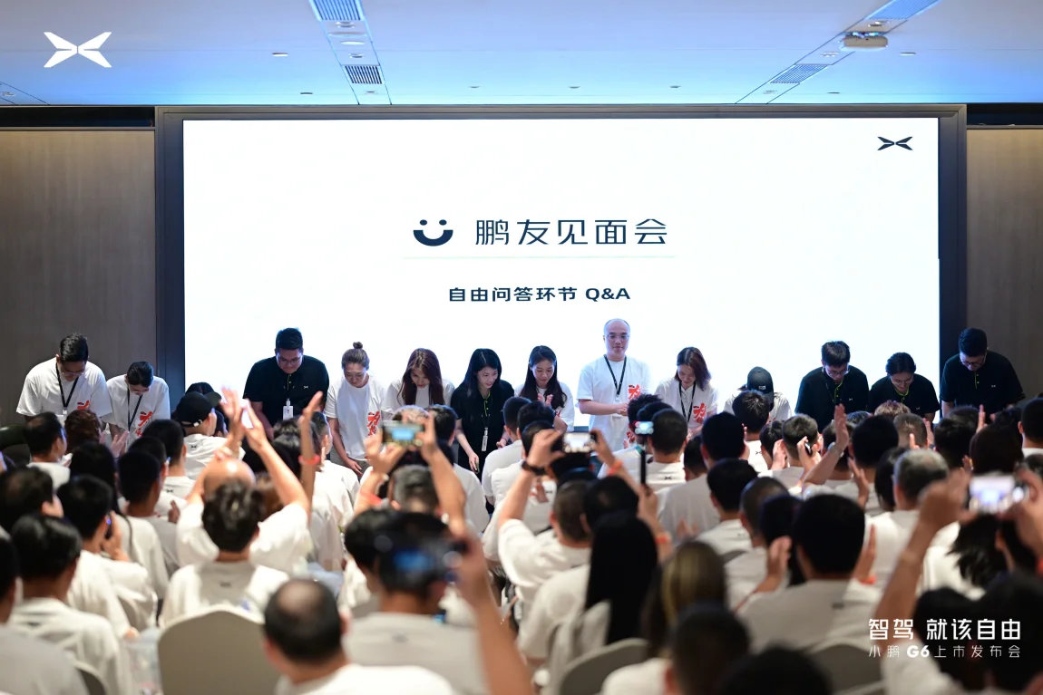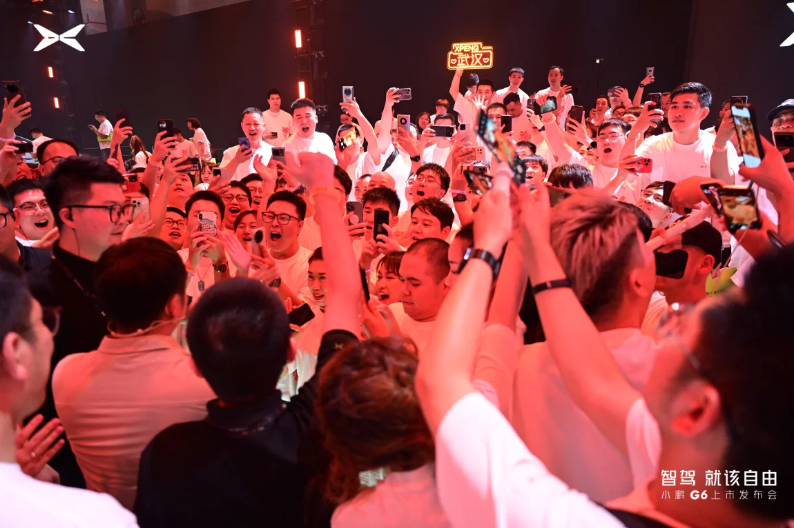 小鹏在台上说,G6一交付就有XNGP了,兄弟们!下面欢呼声不断