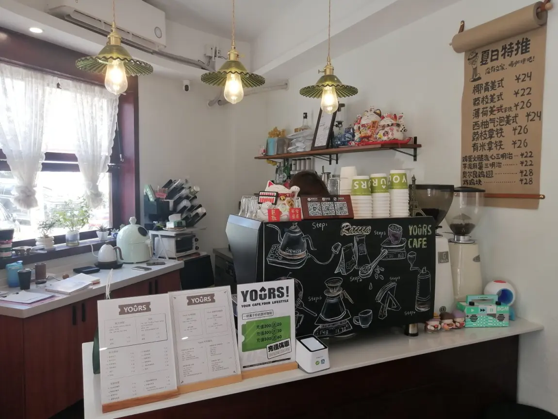店面不大,进🚪之后一边是冲咖啡的柜台,另一点摆了4张小圆桌。装修很🈶英伦风,白色的墙体挂着大小不一的挂画,真精致