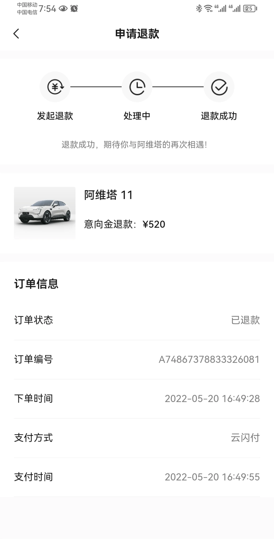 我赶紧缴纳了520心动金,等到试驾的时候,发现阿维塔的后备箱太小,无法后备箱露营。我是一个喜欢野钓的人,阿维塔无法满足我的需求,于是果断退订。