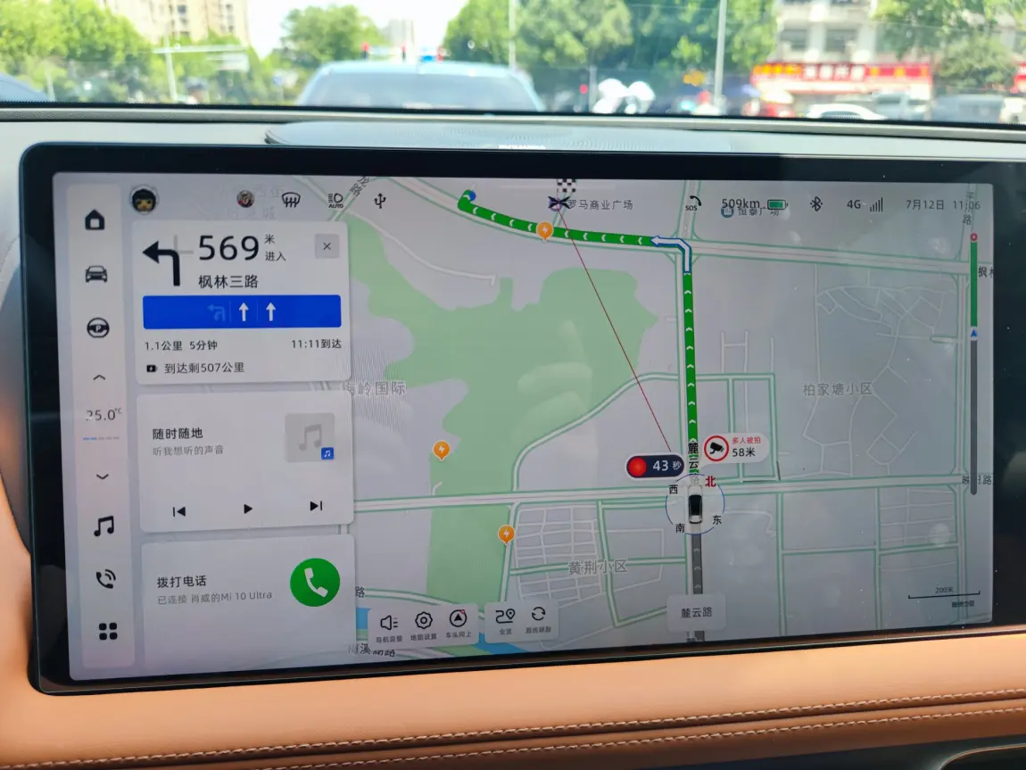 以前我就纳闷,同样用的是高德地图,怎么手机导航就有红灯读秒,车机却没有跟上,不过现在终于接入了,仪表盘和大屏都有展示。