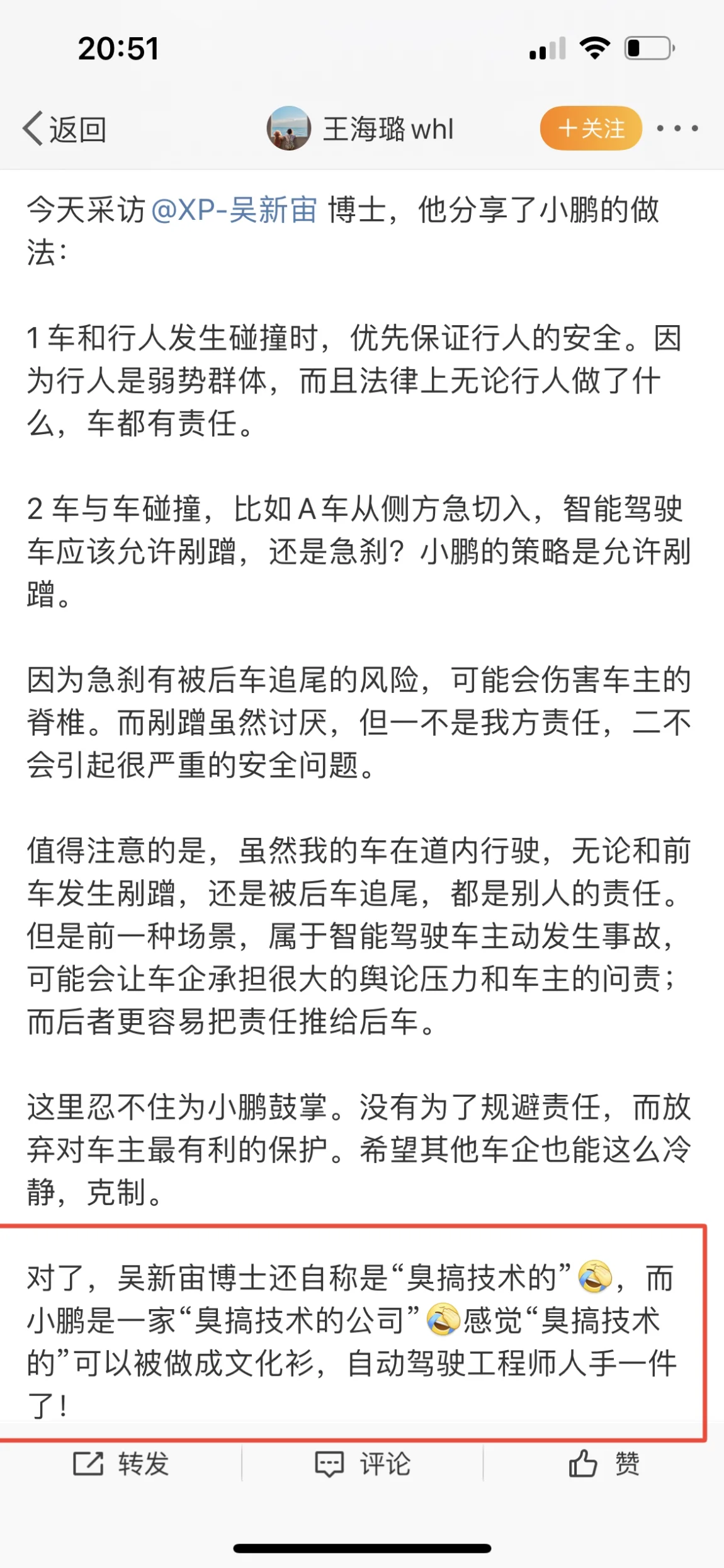 小鹏自动驾驶中心副总裁吴新宙博士竟然自称是“臭搞技术的”😜😜😜