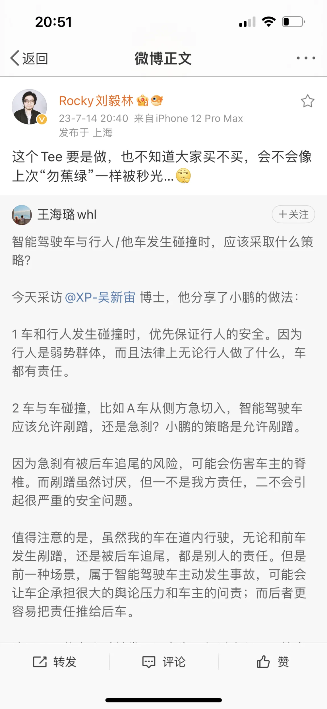 @Rocky 出的主意:如果小鹏精品商城出一件“搞技术的”文化T恤,会不会有人买呢?🤔