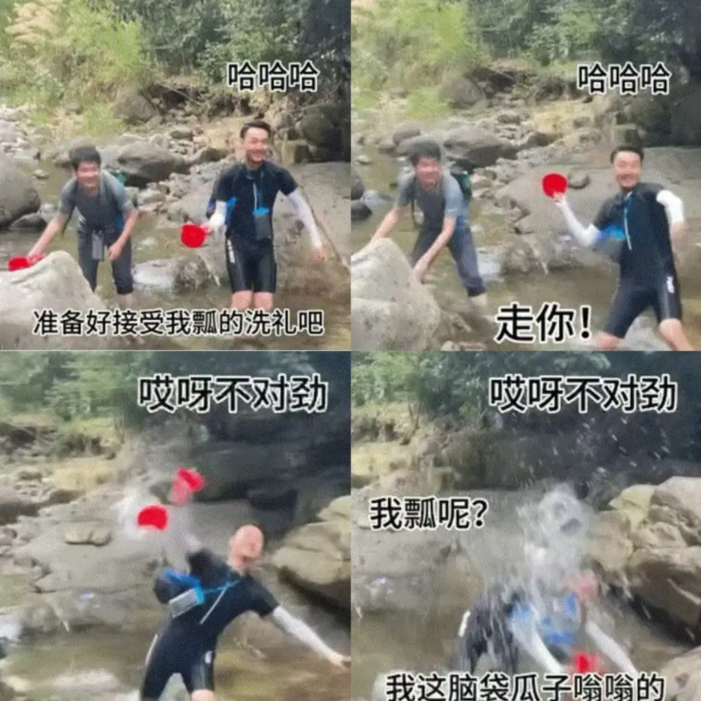 全程除了紧张刺激的泼水混战,当然还有一些奇奇怪怪的女鹏友,@杭鹏客❤️麦芽雪冷萃 放@杭鹏客~AMOcomeon 弃了端庄美丽,搞起了行为艺术。以至于让另外两个不明真相的男鹏友@杭鹏客👻蓝桉 和阿光也选择了加入🤔