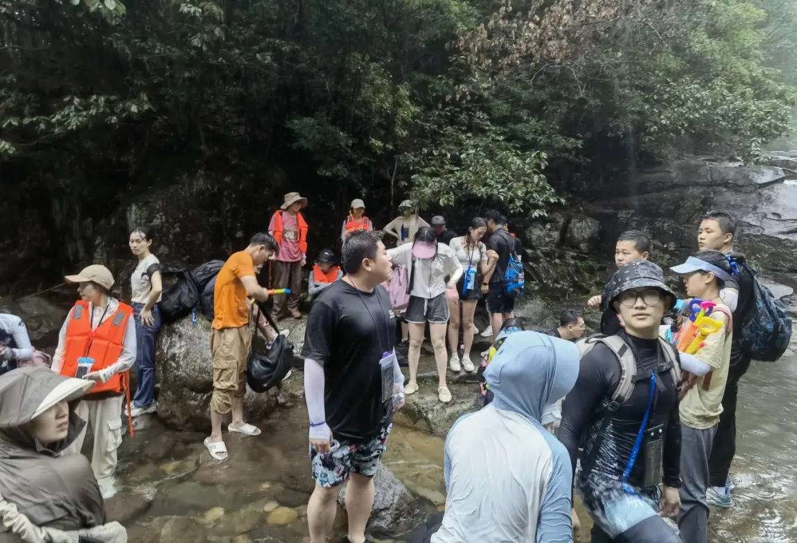 大家领到部分救生衣和水瓢后就迫不及待的下了水,在我刚下溪道还没适应清凉的溪水和步伐之际,就遭遇了一瓢,率先体会了一波透心凉。这能忍吗?当然不能!我也是有瓢的选手!瞅准时机,舀满“弹药”,三、二、一、发射!