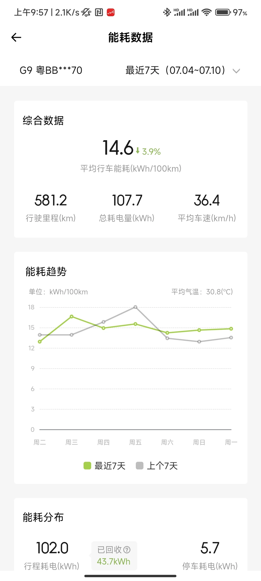 G9给到我最大的惊喜是能耗表现,作为一辆两吨多的大型SUV,G9能耗水平绝对是同级别数一数二的存在。在标准模式下20%高速,80%城市的综合路况下wltp续航完全可以做到1:1(甚至更高),反向虚标名不虚传🤣