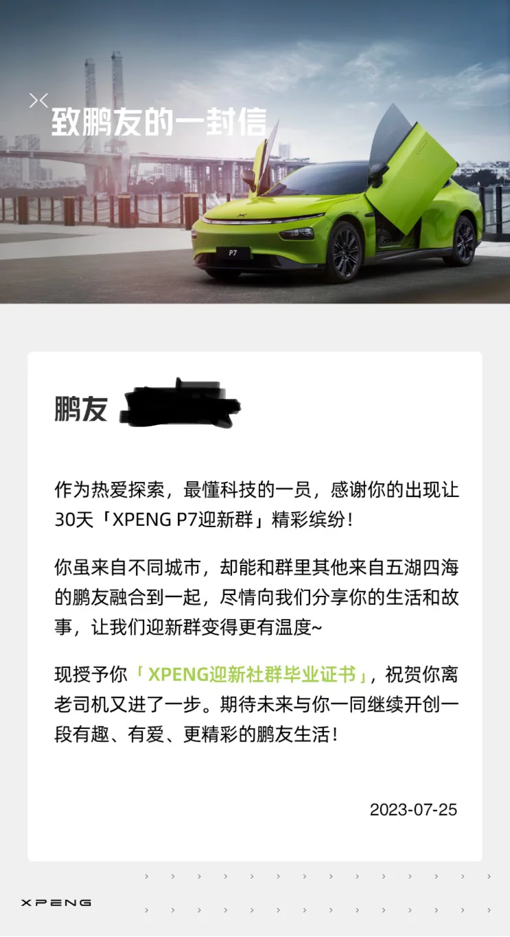 先唠嗑一下选车之路吧,别说小鹏,在买P7前我压根就没了解过电车,也就知道大概有蔚小理比亚迪,而更加阴错阳差的是,被朋友推荐看的第一辆电车,是领跑!为了加深对新能源车的了解,便在附近看了比亚迪,埃安,长安深蓝,也曾一度在领跑和深蓝中做选择。但是,缘分会让你做出最正确的选择,这时候刚好朋友聊起了小鹏,已经没什么耐心的我,决定再去试驾一次,这一次的试驾,直接让我放弃了前面看过的所有车型,在P5和P7间做出最后的抉择,近乎完美的销售,让我做出了完美的决定-P7。