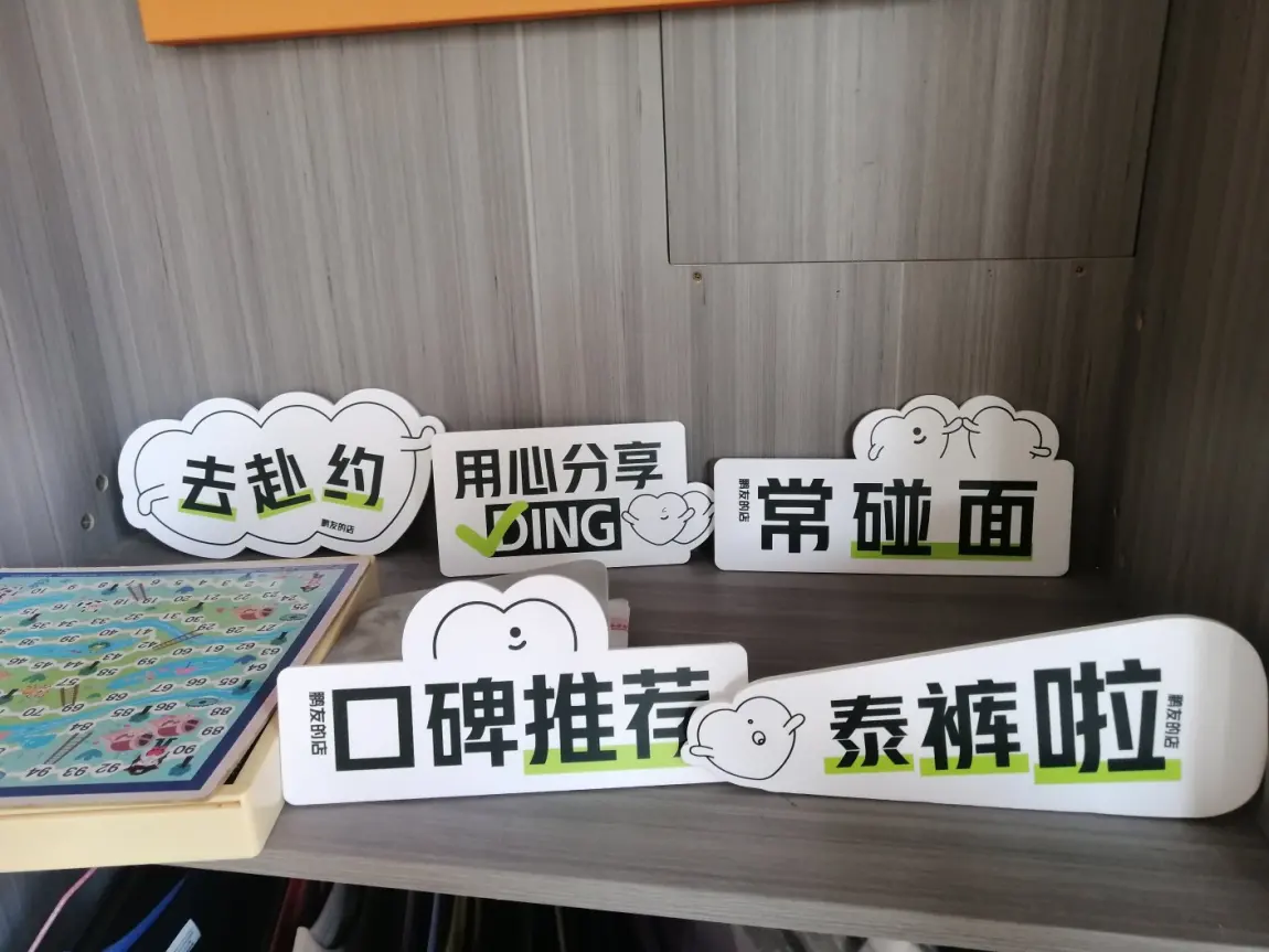 店内摆放着各种鹏友的店活动的认证手举牌,不怕找错店🤓