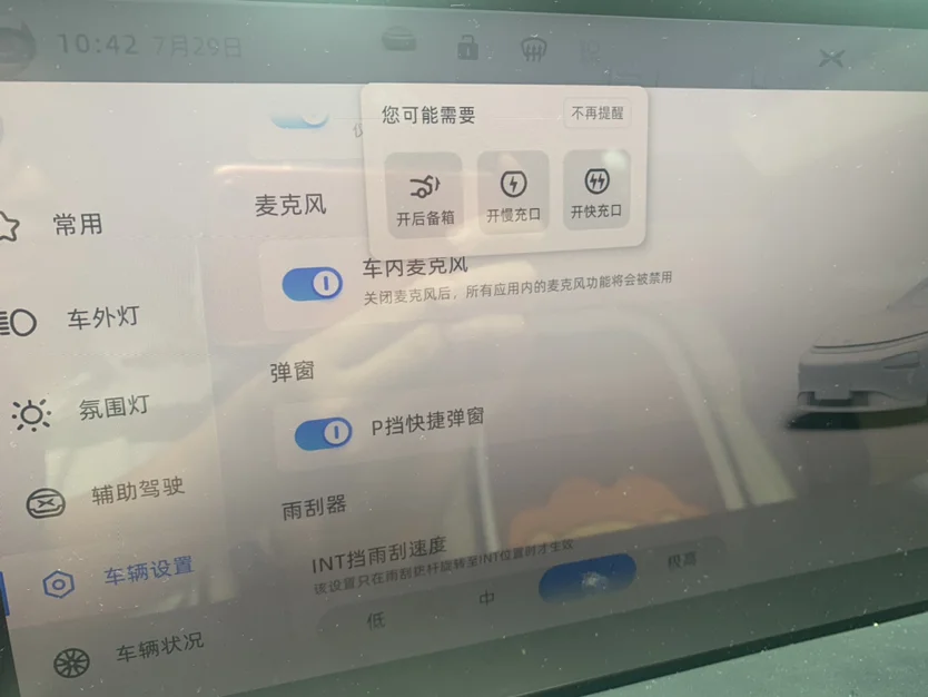先到车辆设置点击弹窗开启,以后挂P档就会弹出开启后背箱,快慢充了,(给点建议,这三个窗希望可以自己喜欢加什么快捷,自己决定,可能每个人情况不同,我可能不用慢充,就没什么用,可能我需要其他的快捷)