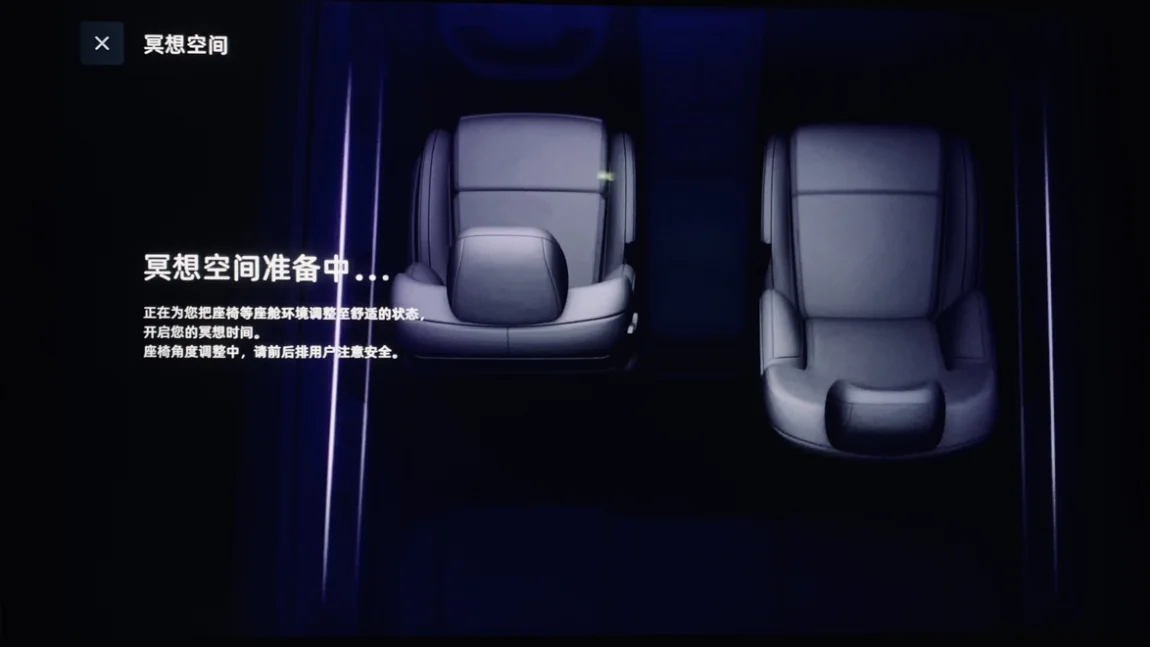 ❣️喊小P开启“冥想空间”,氛围灯、香氛系统、座椅、空调都会自动调节,丹拿音响播放着白噪音,在这样的环境下可以彻底放松自己。