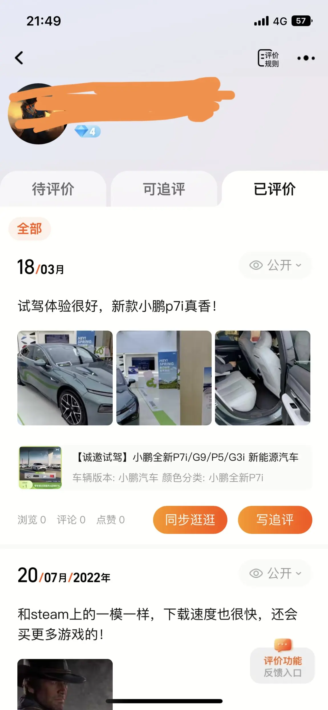 期间,我们观望了很多轿车的上市和降价,试驾过model3、极氪001、哪吒S和海豹等多个车型,我总是向女朋友抱怨,感觉这些车于我的需求而言不尽如意,要么外形不符合我的审美,要么相比于我们现在的油车而言功能相差不大,总感觉有所欠缺。直到在2022年12月西安的一次车展上,因为我们是奔着新能源车去看的,当时车展上仅有比亚迪、极氪和小鹏等少有的几家新能源品牌,我便和女朋友第一次线下体验了小鹏p7和g9,我记得当时女朋友给我说了一句话“p7的颜值内饰感觉很不错哦”,就是这一句话让我对这辆车有了浓厚的兴趣。