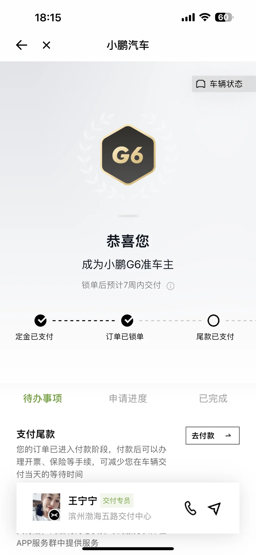 #我订车啦# 在七月初看了某迪宋最新款,交了定金后迟迟不来车,这期间又看了其他几家品牌,感觉也都一般,直到加油的时候无意间发现小鹏店,进去以后就被G6吸引了,然后试驾了一下四驱版,三秒破百直接起飞,包括它的各种前沿科技,最重要的是内饰黑色,无边框的门我很喜欢,然后就定了。