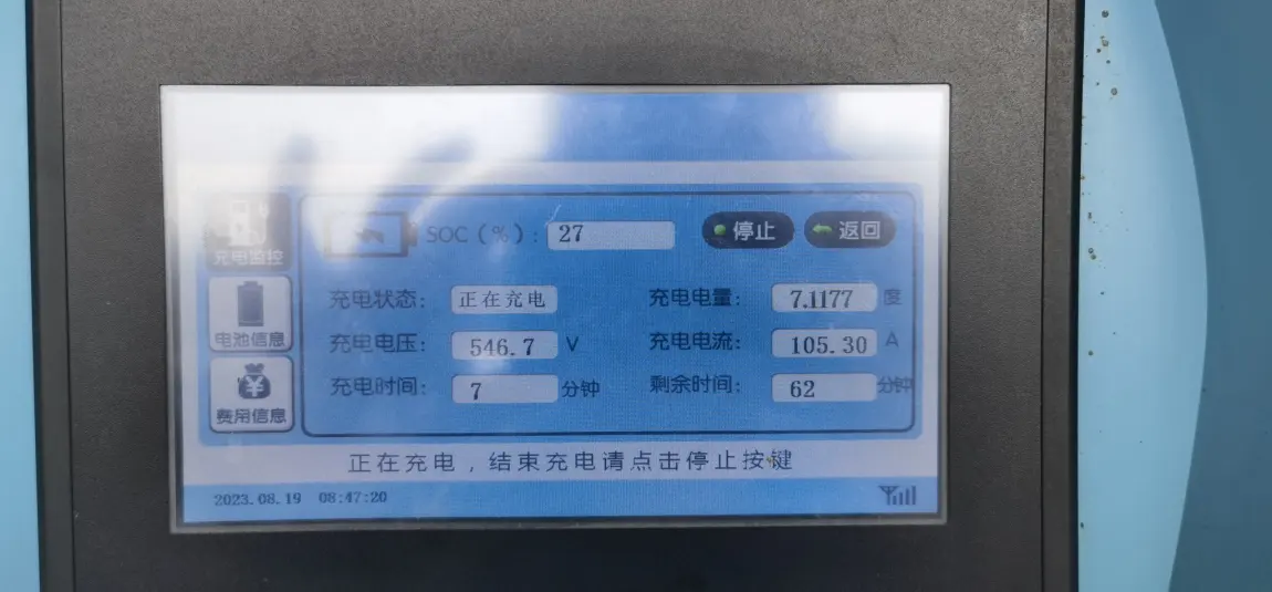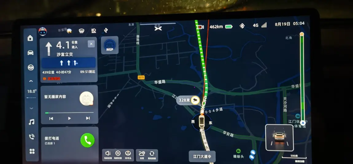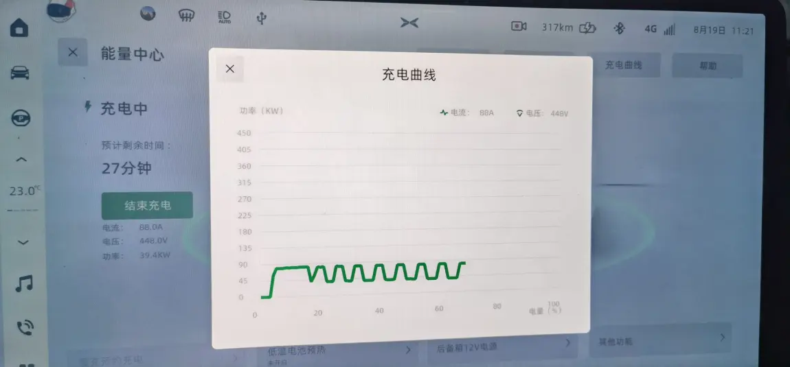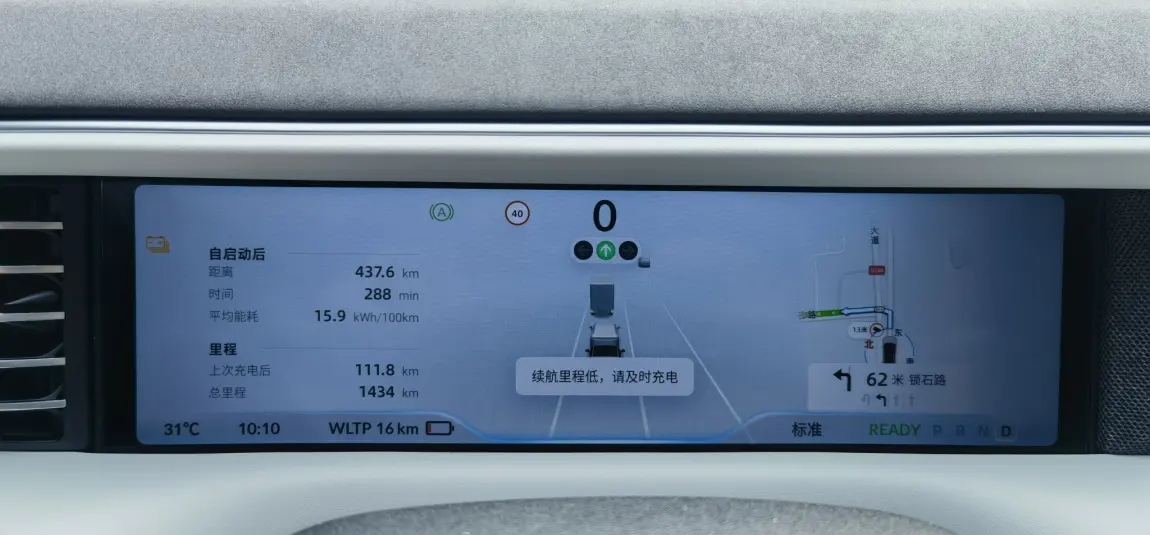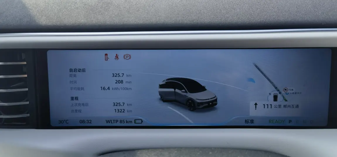 满电出发长沙gogogo江门出发,郴州小鹏充电桩充电,440km,中途休息怕不够电,补了7分钟7度电,到达后wltp剩余15km,结论:中途不补,估计也能到,不过会热死 续航低于25还是20km, 空调开始不制冷,初步结论:满电高速跑380没问题(表显用时300分钟,减掉上厕所充电25分钟左右,全程除了老婆开了40分钟,其余时间顶着限速跑,时速接近100)