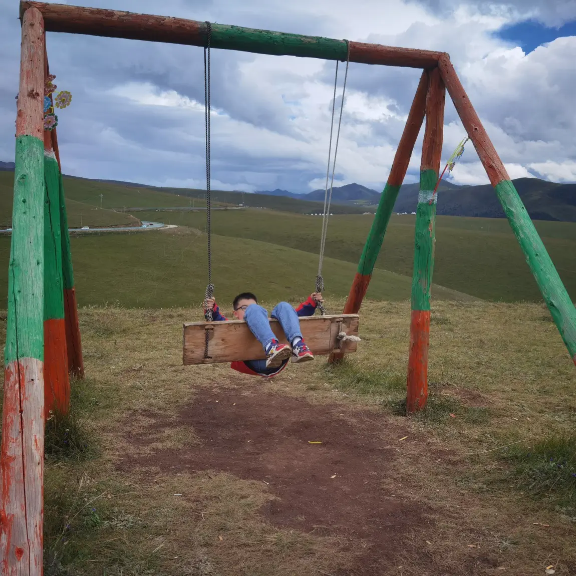 第三天按计划一大早出发折多山观景台,还好赶早,折多山观景台人不是很多,爬了一截山,娃儿和老汉都开始有点气喘吁吁,把准备的氧气瓶用上了,慢慢人越来越多,赶紧出发新都桥,掉电依旧吓人,下山的时候慢慢掉电很舒服,下坡路段,不担心电量了,新都桥小鹏充电桩站点好像只有慢充,电量还足够,就充了一点,吃了午饭继续前行塔公草原。