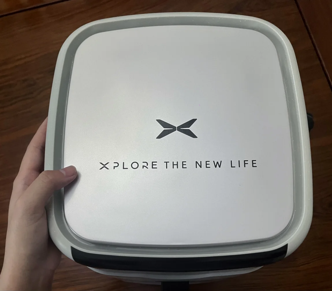 颜值完全ok,从外观看设计比较简单利落,个人来说我很喜欢顶部的设计,银灰科技金属质感,配上小鹏logo,放在家里就是个大型周边。