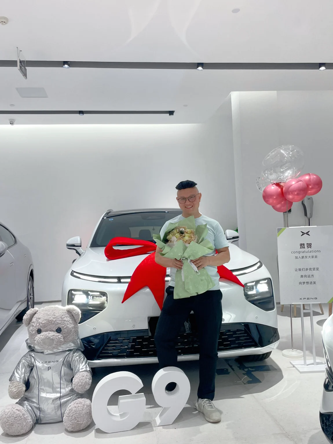 我同学很喜欢车,之后一有时间就带我去试架各种车。偶然一次机会试驾了小鹏G9,一试驾就吸引我了,特别喜欢NGP自动辅助驾驶,能自动刹车,自动加速,超车,变道,堵车的时候还能自动跟车,这些马上大大增加了我的兴致,后来也仔细对比🆚了竞争车型蔚来新款ES6和Modal Y,蔚来的服务蛮好,但车的性价比不高,用车成本也很高,充电速度不及G9的800V平台,换电服务费还要另收30元,30元都可以充20度电了😓!果断不考虑蔚来。Modal Y车子很好,但是好多都不喜欢,比如说方向盘太重,智能辅助驾驶还得好几万,还有导航跟本就不好用,没有小鹏人机对话强,买了特斯拉还得用手机导航,哪来智能?充电速度也比小鹏慢多了,对比完后果断选择了我的小鹏G9,舍弃了我的大奔,9月18日在长沙提了车,长沙雨花销售中心的服务也蛮好,感谢🙏各位鹏友,开心至极!