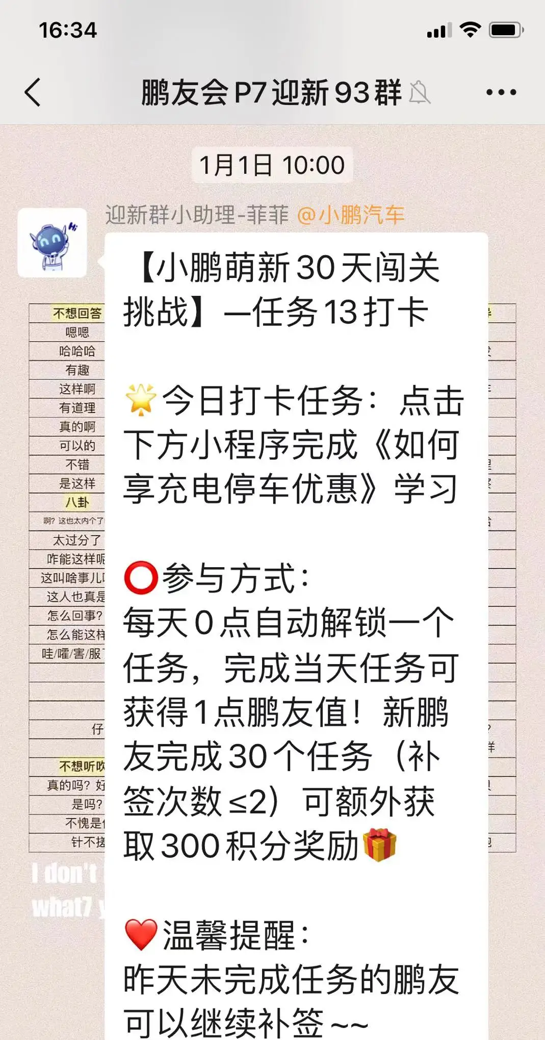 进入交付流程以后,工作人员就会安排邀请车主按车型加入迎新群,30天里每天解锁一个学习小任务,通过图文、视频等简单明了的方式详细展示车的性能操控、功能使用、注意事项等,让每一个新车主/新手司机都可以跟自己的车快速建立深度联结~