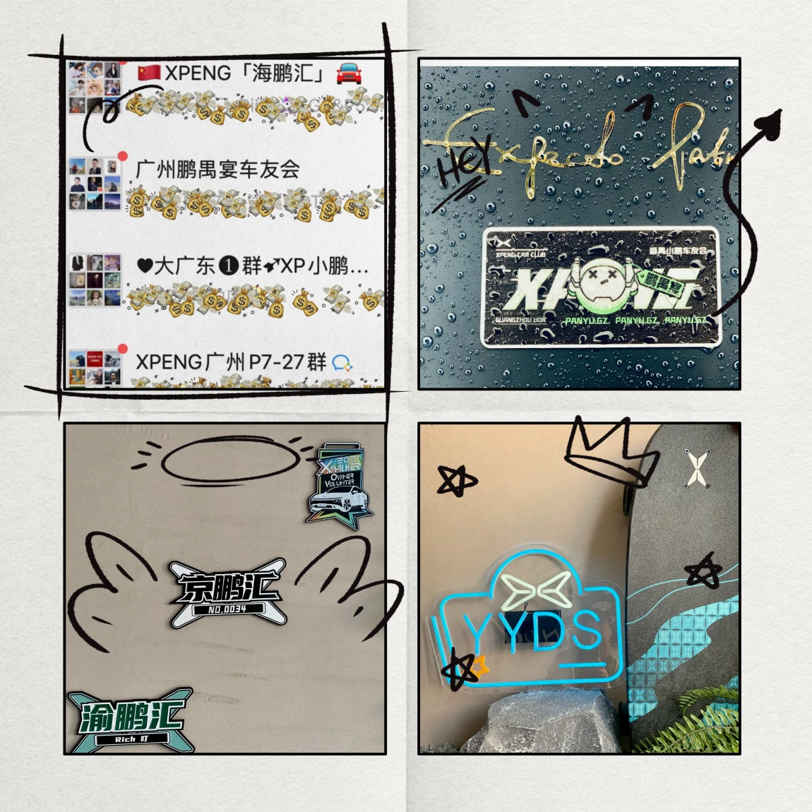 从鹏友会萌新群毕业以后,工作人员会按车主所在区域拉到车友群,在车友群里可以认识好多有趣的新鹏友,随时随地向鹏友求救、交流用车心得、防雷避坑指南,还有组织各种线下聚会:露营打球唱k饭醉活动等等等等,车友群还有专属logo车标,贴上它就能随时活抓鹏友“认祖归宗”~感觉就像随车赠送超多友谊,以后谁说自己是韭菜的,我第一个不同意!(狗头)