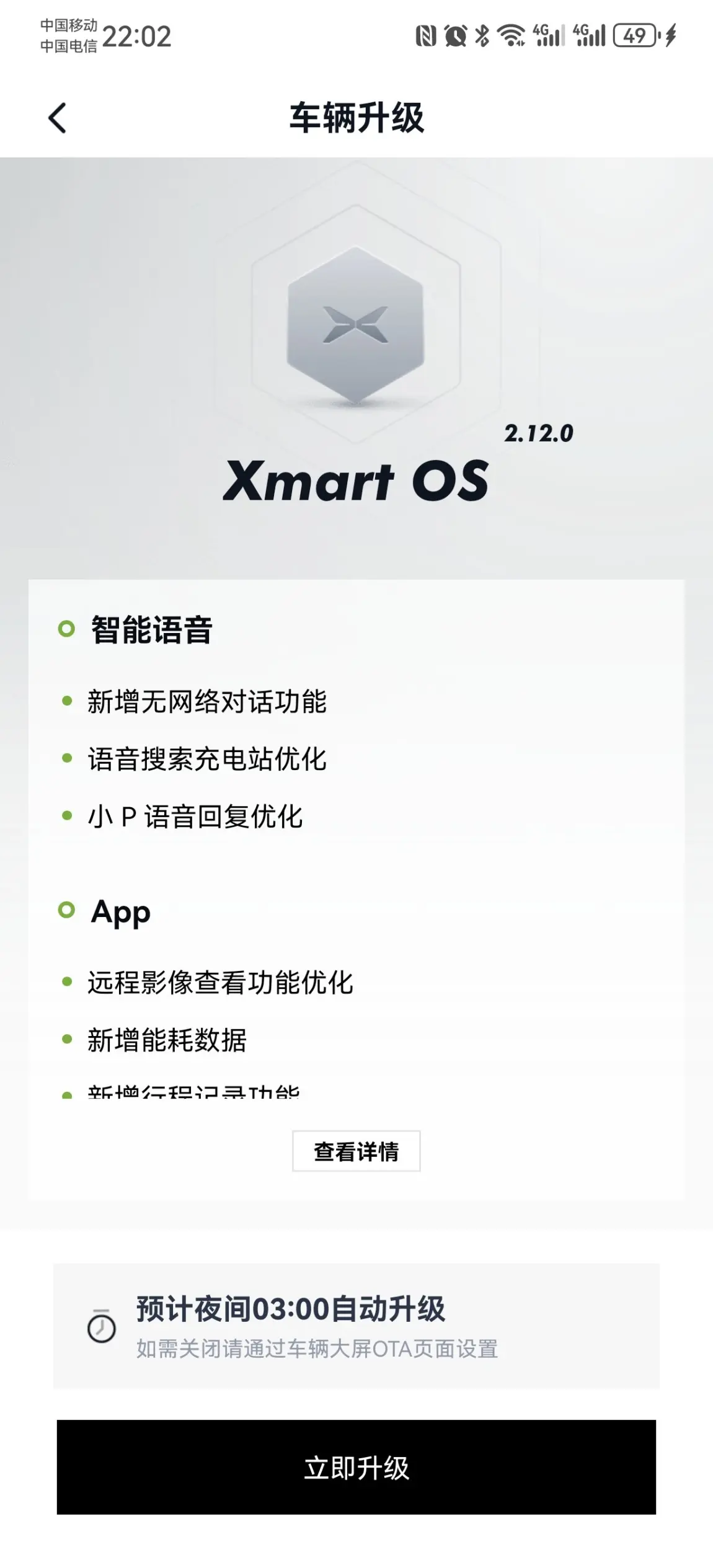 车机升级2.12.01.NGP模式下,可以反向打转向灯取消变道灯。终于不至于长时间被人喷了。2.红绿灯🚥感觉没啥意义,周不结合导航,不能自动停止前进。只能说红绿灯我认识你了,哈哈3.电池电量可以支持%显示了,这个对于焦虑症患者稍微友好点。4.摄像头查看,延迟特别久,没有以前流畅。流畅度有待提高。5.其他待发现…