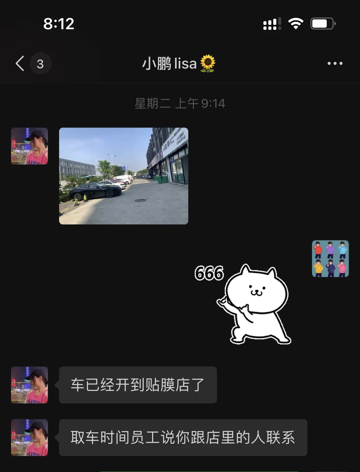 1. 提车当天加装了电尾比较晚,交付小姐姐帮忙送车去改色。