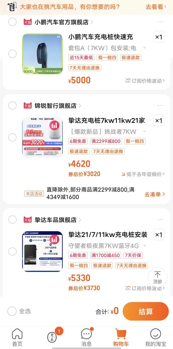 G6送5000元车主权益,买小鹏家充桩属实太贵,买第三方的又担心有适配问题。淘宝找了几个大牌子都是含30米线的,真是便宜不少啊!大家是怎么选择的?