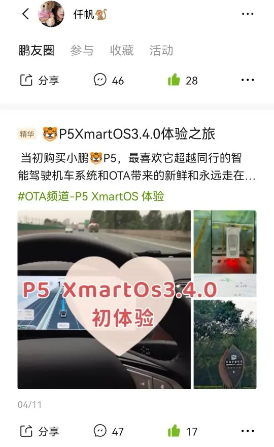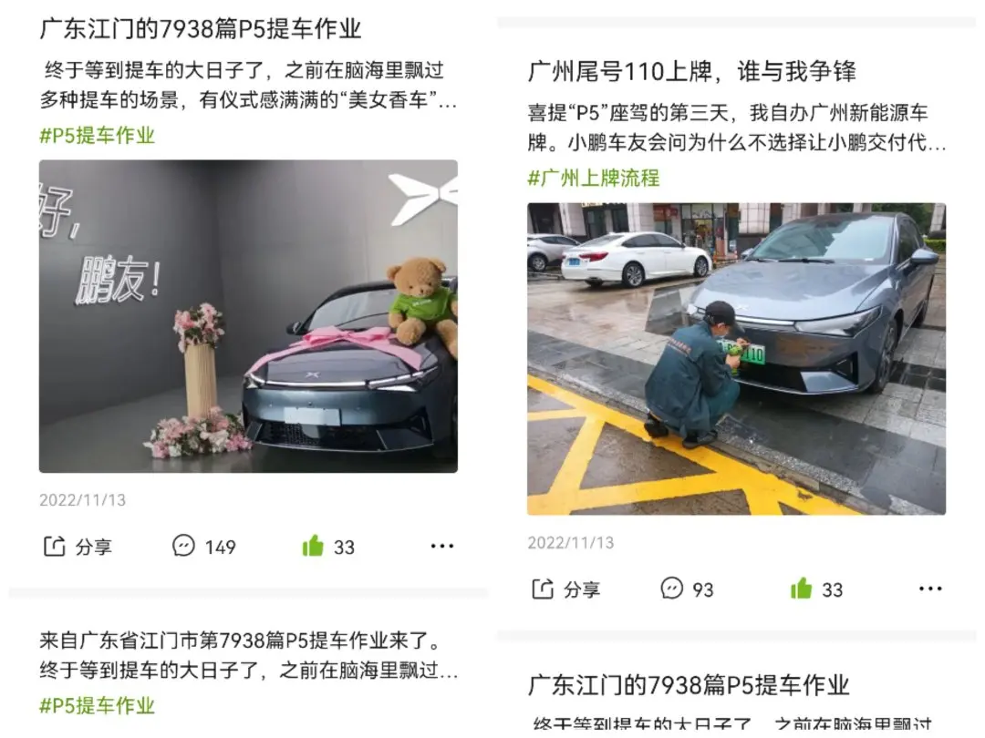 2022/11/13 进入小鹏APP社区写下我的第一篇正式的分享《广东江门的7938篇P5提车作业》,虽然没有评为精华,被“大管家”不小心被推到了“推荐页”,初体会什么叫车友间的思想碰撞的“互动”,同日还有《广州尾号110上 牌,谁与争锋》提车系列分享,同时学会了如何发鹏友圈、长图文,一连三P。