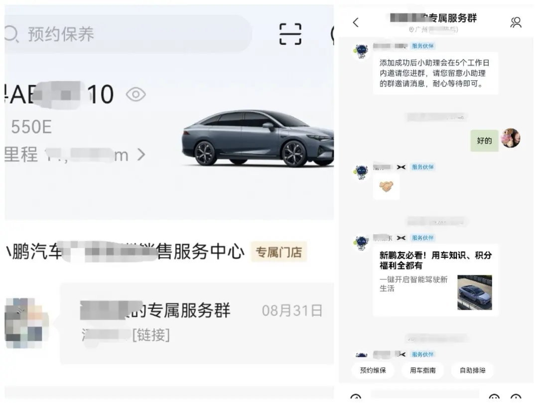 小鹏为每位车主建了一个专属服务群,专属服务群定期向我推送车辆保养小知识,让我时常感觉到身边有位经验足、随问随答、绝对负责可靠的老司机在,还是不收费的。