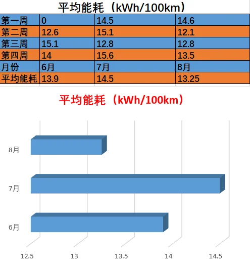 首选能耗低、续航实的电车,能实现更高的能耗效益,相同的电量可行的里程更多,用车成本进一步得到压缩,体现出电车比油车经济效益的优势,越开省钱,省钱就是生钱另一种途径,效益是一样的。下图是我本人在6、7、8月的能耗图,只作图例补充阐述,无对比参考价值 。