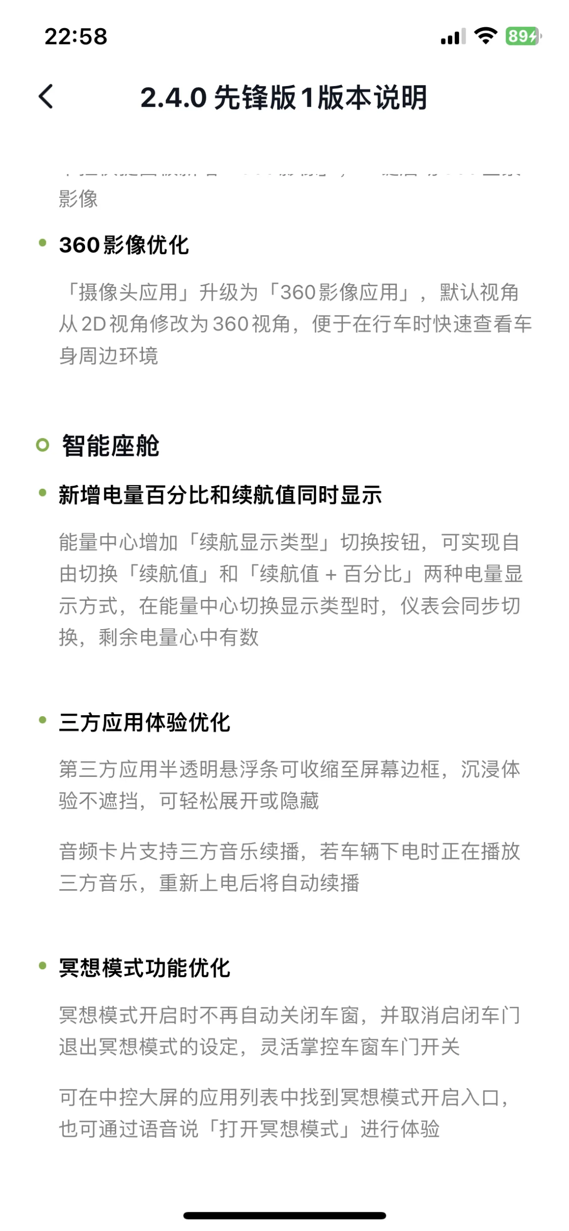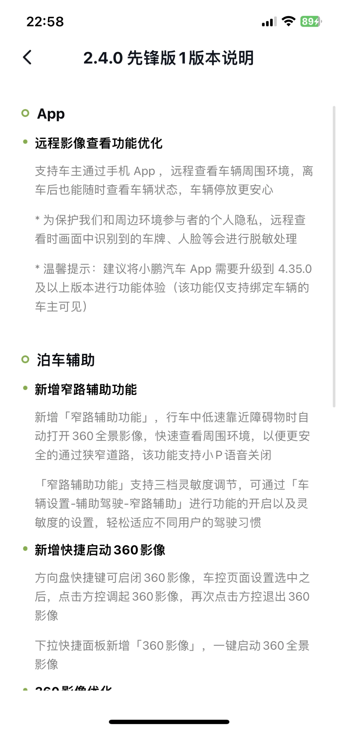 本次更新的版本是2.4.0先锋版1,这次的更新只有老G3带有820A芯片的车型可以升级,老大屏的机器目前看来应该是无法支持的。更新的内容如下: