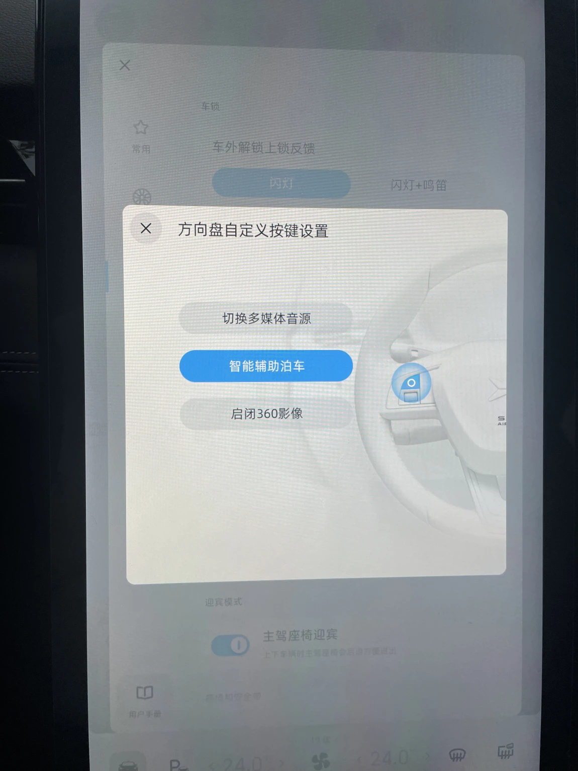 方向盘上的自定义按键也增加了快速开闭360影像的设置,设置方法和以前一样在车辆设置中设置即可。