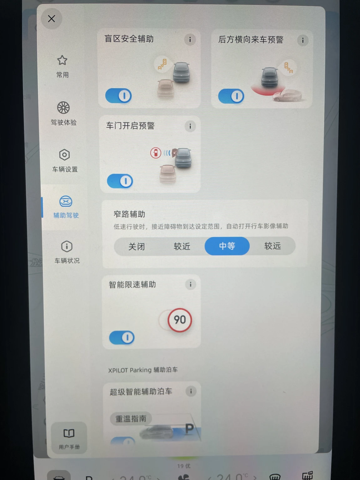 窄路辅助的灵敏度可以在车控页面的辅助驾驶页面中找到。