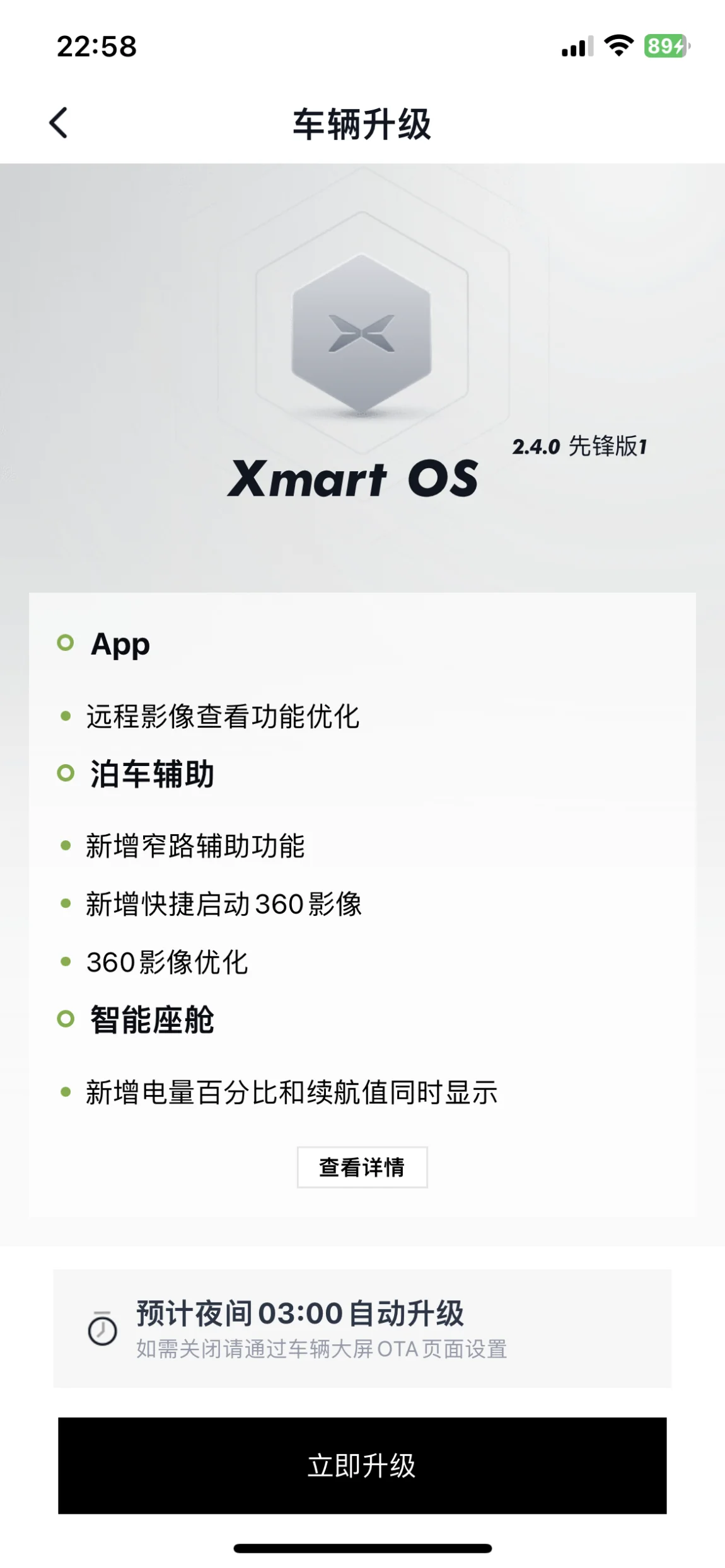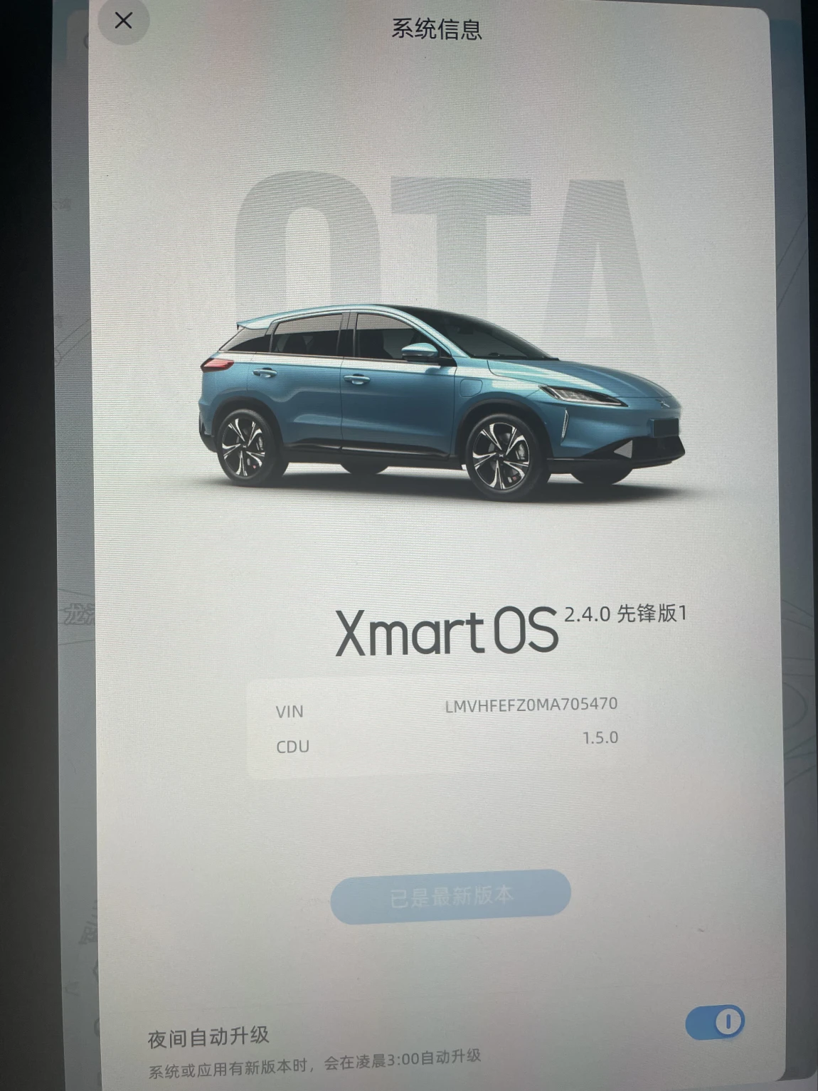 升级的方式比较方便,主要可以采用在车机上点击升级,预约夜间自动升级以及在APP上点击升级的方式。需要注意的是升级前一定要确保小电瓶不要馈电,然后因为升级期间会失去车辆控制能力,因此千万不要在等待红绿灯期间升级哟!!本次笔者采用的是APP上点击升级的方式,全程升级大概用时5分钟,非常方便。