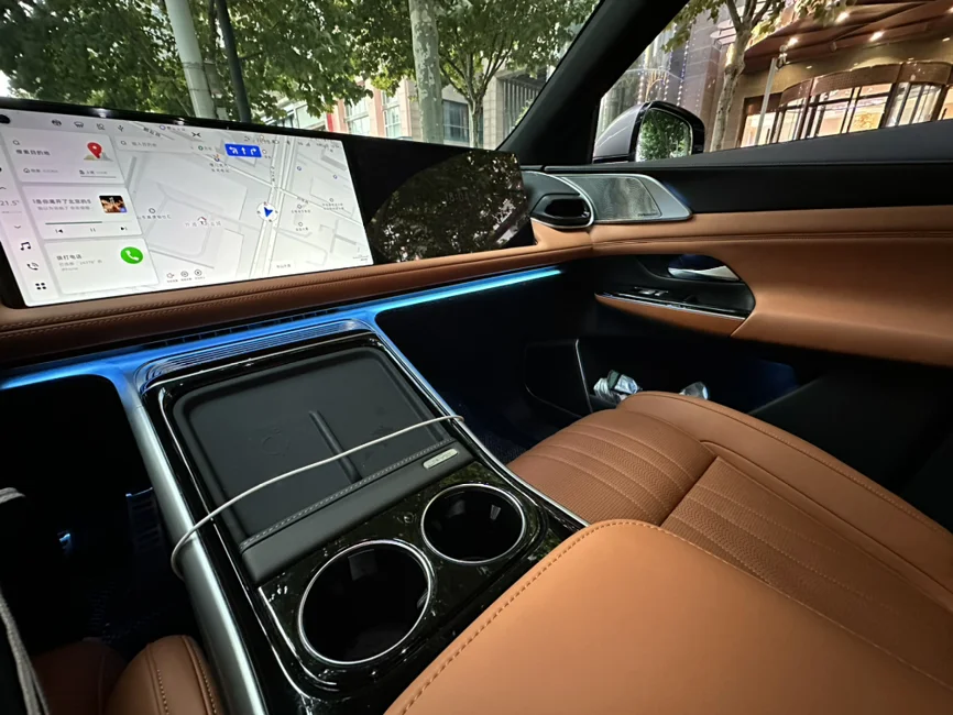 车内中控的钢琴烤漆部分取消了,改为皮质,看起来简约许多,但是讲实话高级感没有原来做的好。