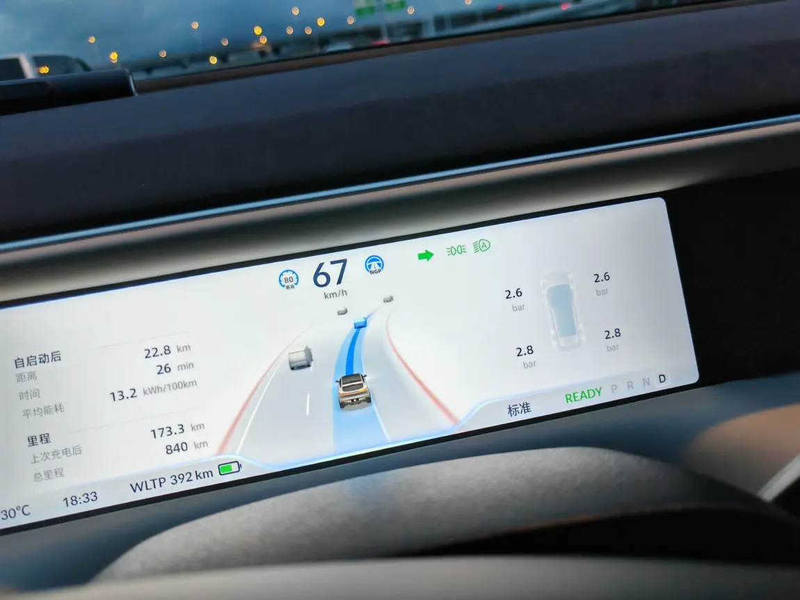 一是如何打开高速NGP。我习惯是待仪表盘显示NGP灰色图标时,将方向盘处的档杆连续下拔两次,会有提示语音,已开启NGP,此时仪表盘NGP图标显示蓝色,仪表盘上本车行车道也显示为蓝色。
