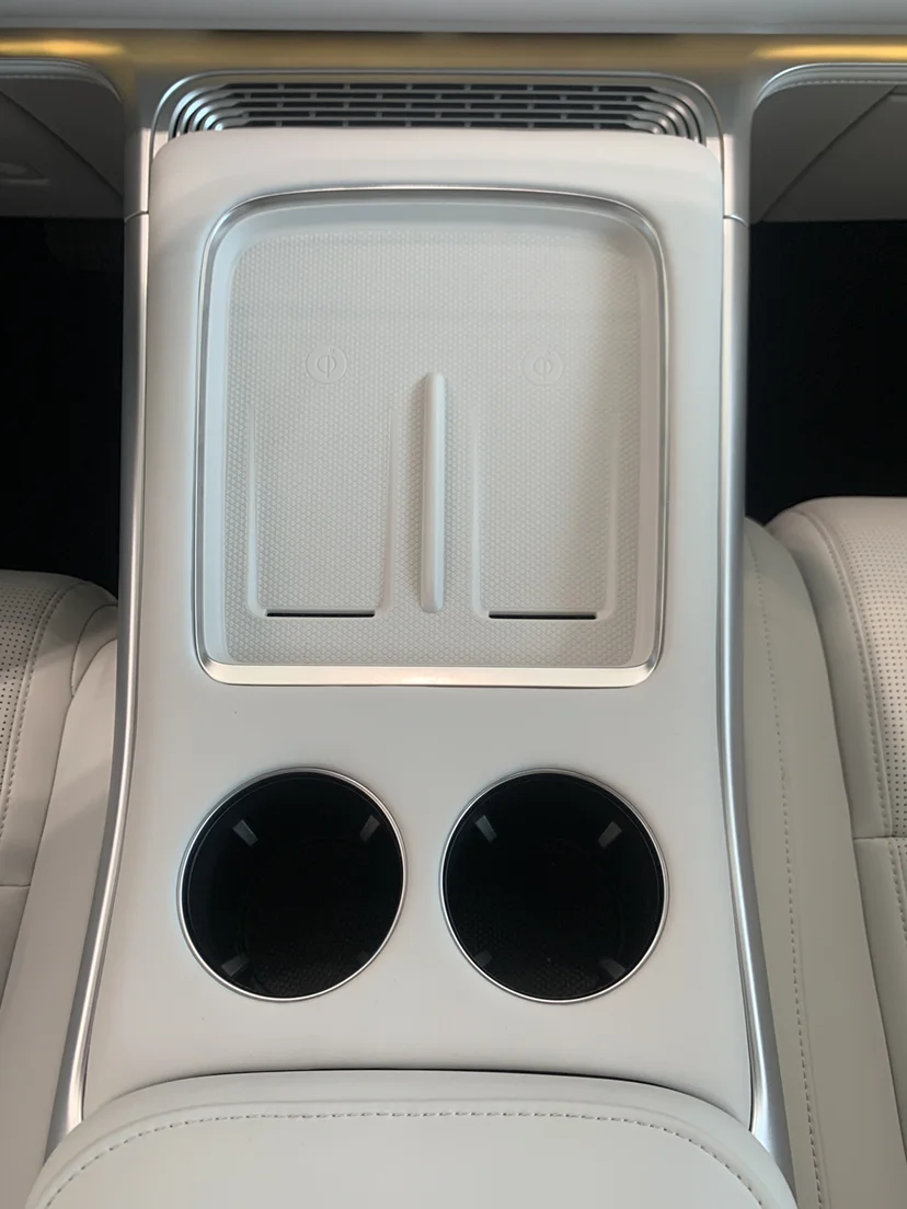 头顶也拥有了很方便的眼镜盒。主副驾都能在不同方向打开的中控储物盒,关键是里面还自带了香氛系统,太羡慕了。前排还自带了50瓦的双无线充电。