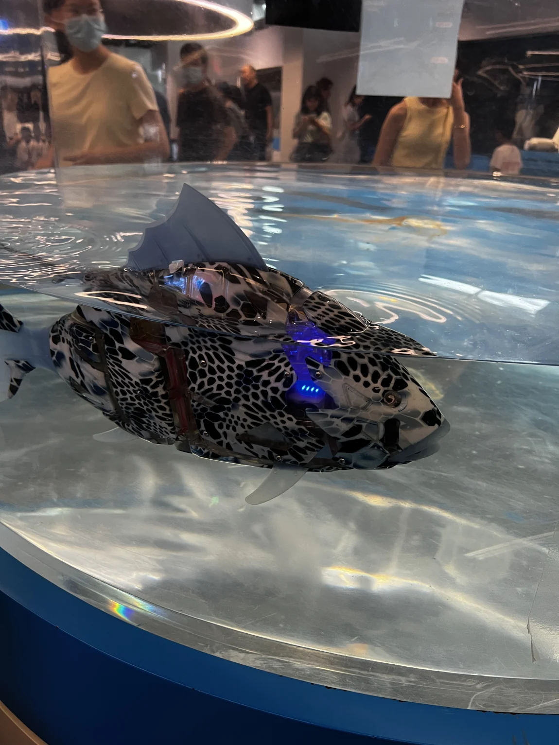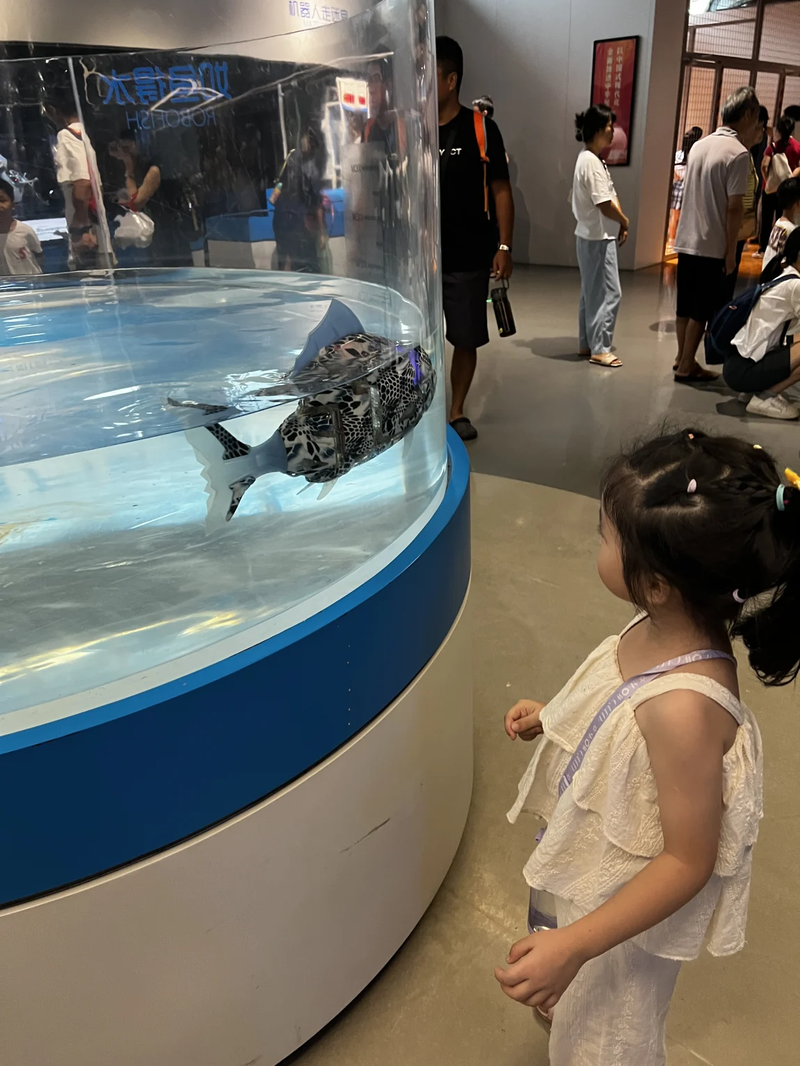 最让小朋友兴奋的是水中的机器鱼,它们自如地在水中游动,仿佛来自未来. 🐟🌊