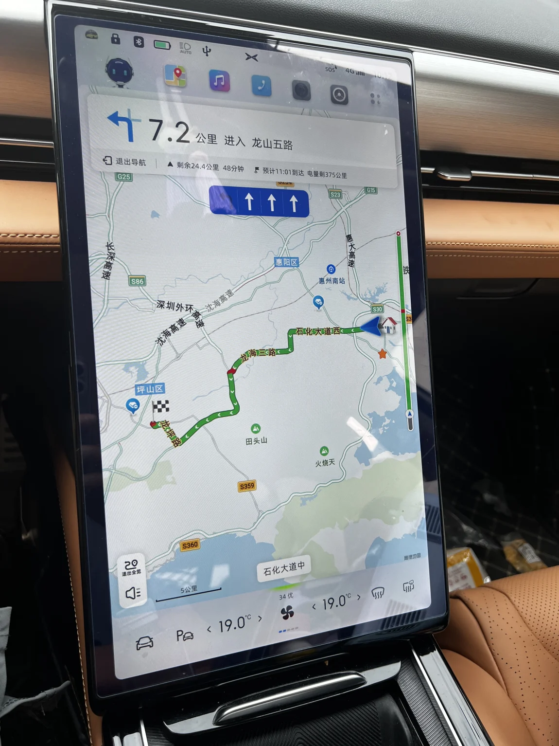 10点出发 ⏰,导航显示总路程47km,沿着深汕公路直达龙岗市区,真是后悔买激光雷达版本,不让就可以让小p开车了,哈哈哈。