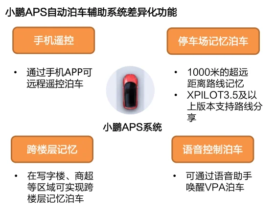 小鹏汽车的自动泊车辅助系统表现出色,最初在G3车型上推出,并在后续的P7和P5车型中逐步扩展了更多功能。这包括多种全场景泊车,如垂直、侧方、斜方和特殊泊车。