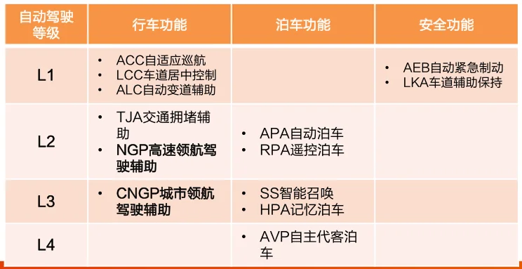 在自动驾驶技术领域,小鹏汽车实现了全栈自研,包括感知、定位、规划和决策等核心算法的研发。他们推出了高速NGP、ACC+LCC等核心功能,并率先在2022年9月在广州P5车型上线了国内首个量产城市NGP系统,标志着高级智能辅助驾驶技术在城市场景中的首次量产应用。增强版ACC+LCC通过激光雷达进一步提高了感知和精准度,扩大了应用场景。