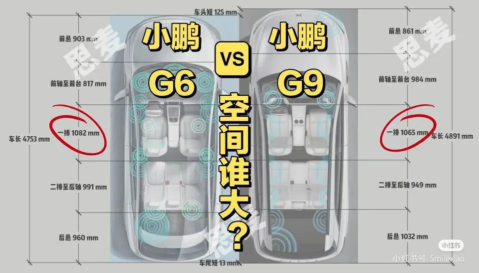 小鹏 G9 🆚G6 空间大了个寂寞? G6大一些,但两个都是比较宽敞的 总结就是G6得房率高。